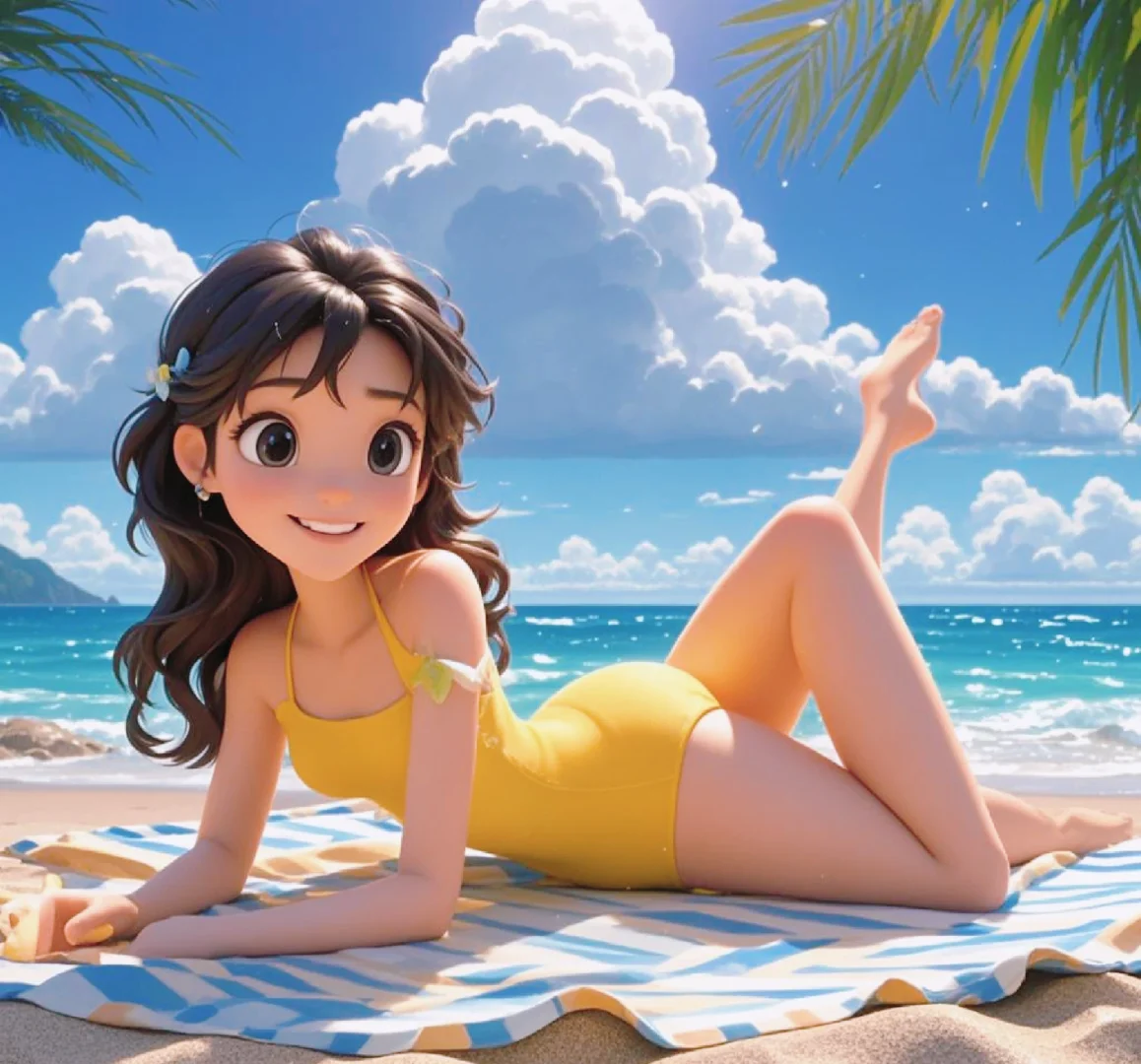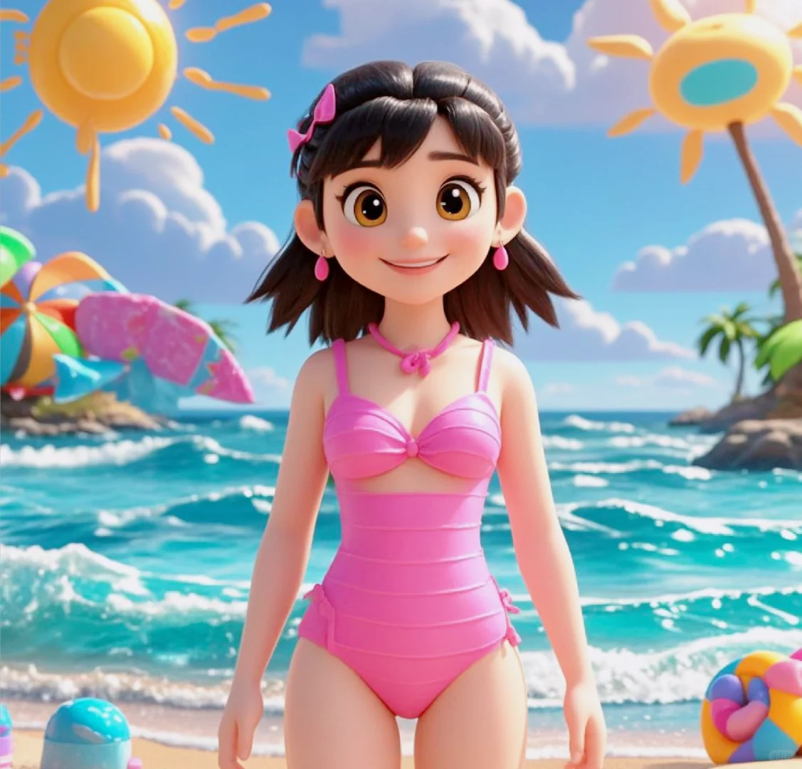 🎀AI 绘画 | 静香泳装,海边梦幻之美