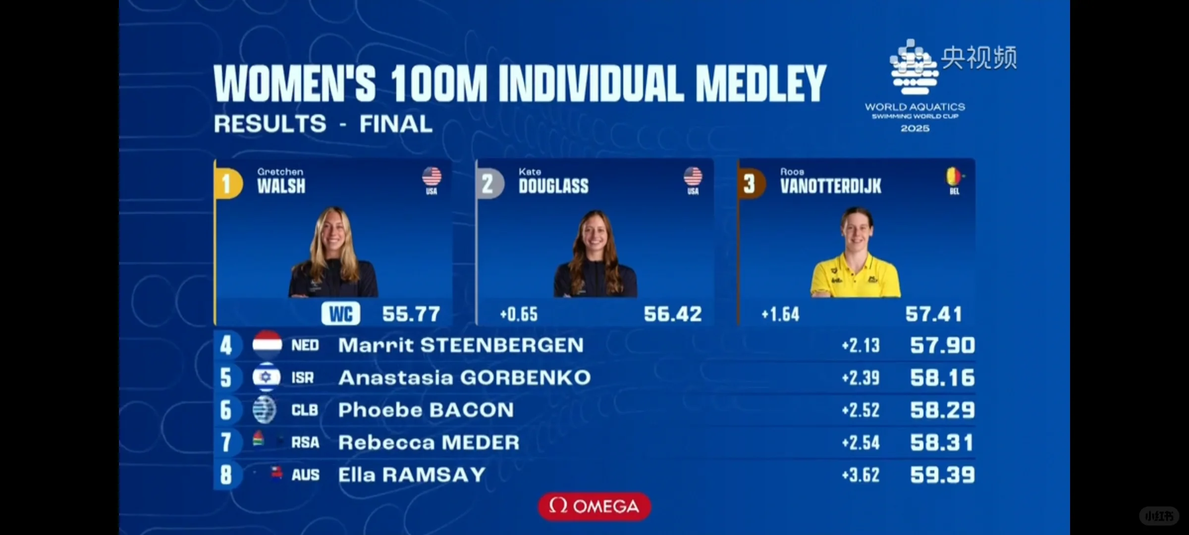 游泳世界杯-小沃尔什100米个人混合泳🏅
