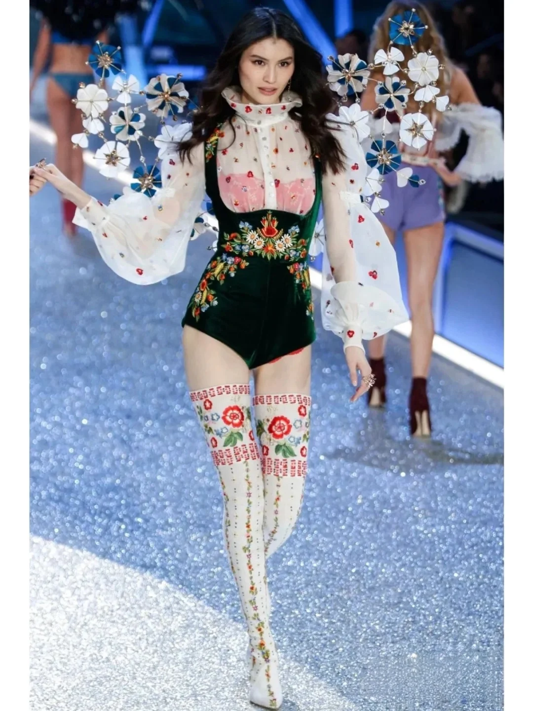 俗话说一白遮百丑,“何仙姑”的名号就是这么来的吧,好多人说她是维密亲闺女,因为分到的每一套秀服都很仙,配上她的冷白皮简直就是锦上添花,因此她也很适合穿长裙礼服,把自己的优势发挥到淋漓尽致。
