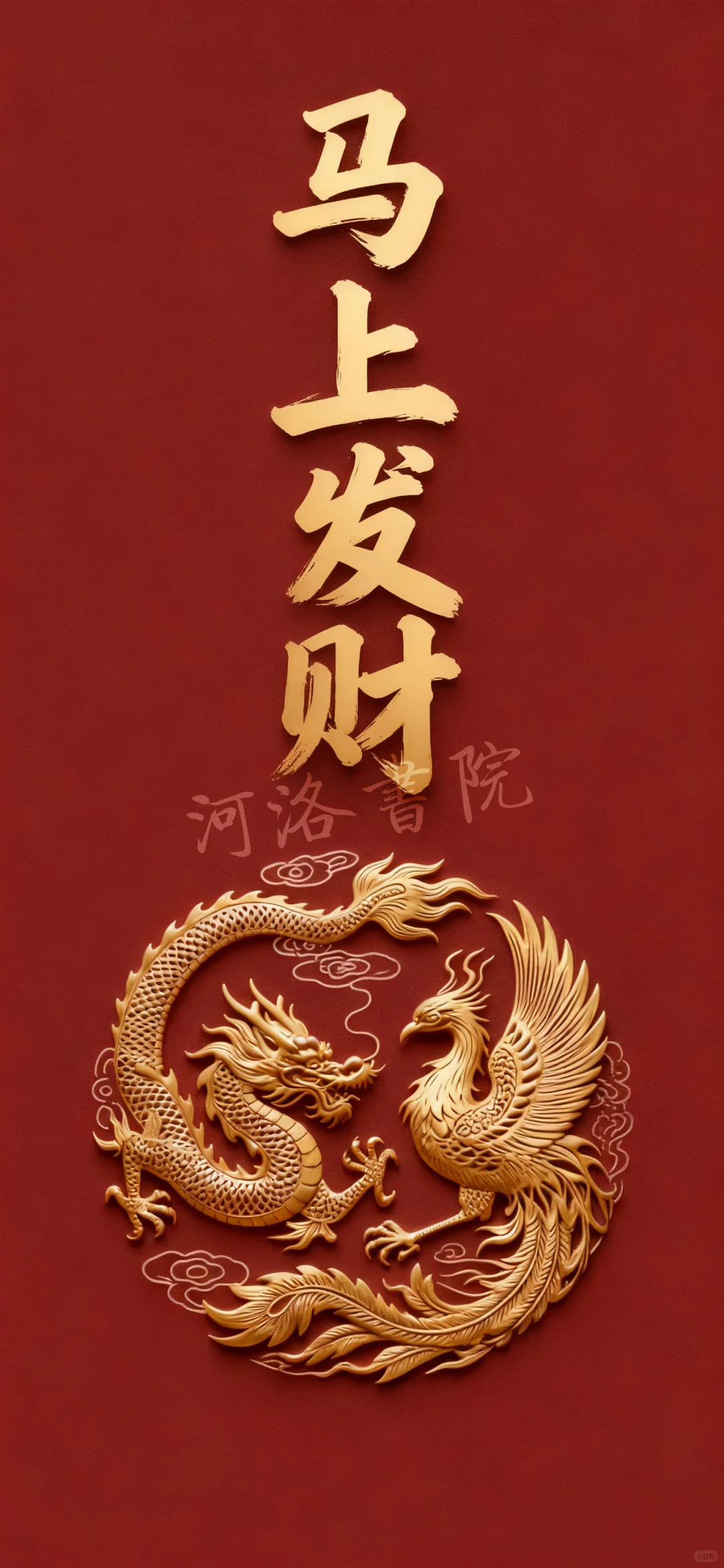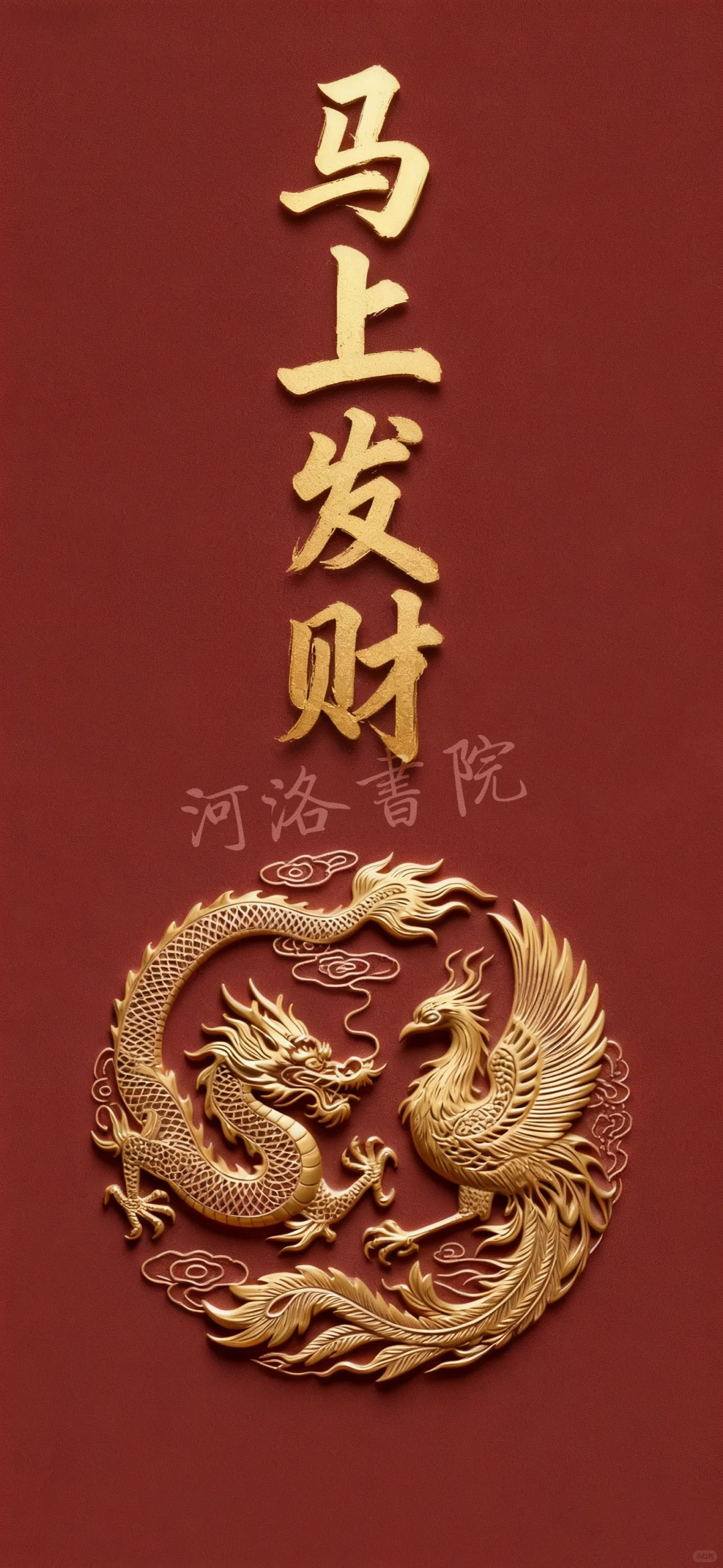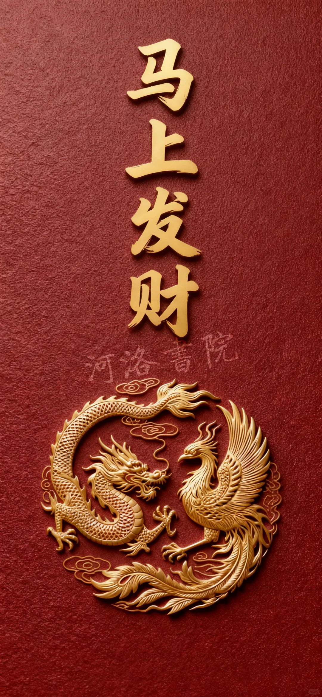 中国传统纹样风格,深红色磨砂质感背景,金色龙凤呈祥图案