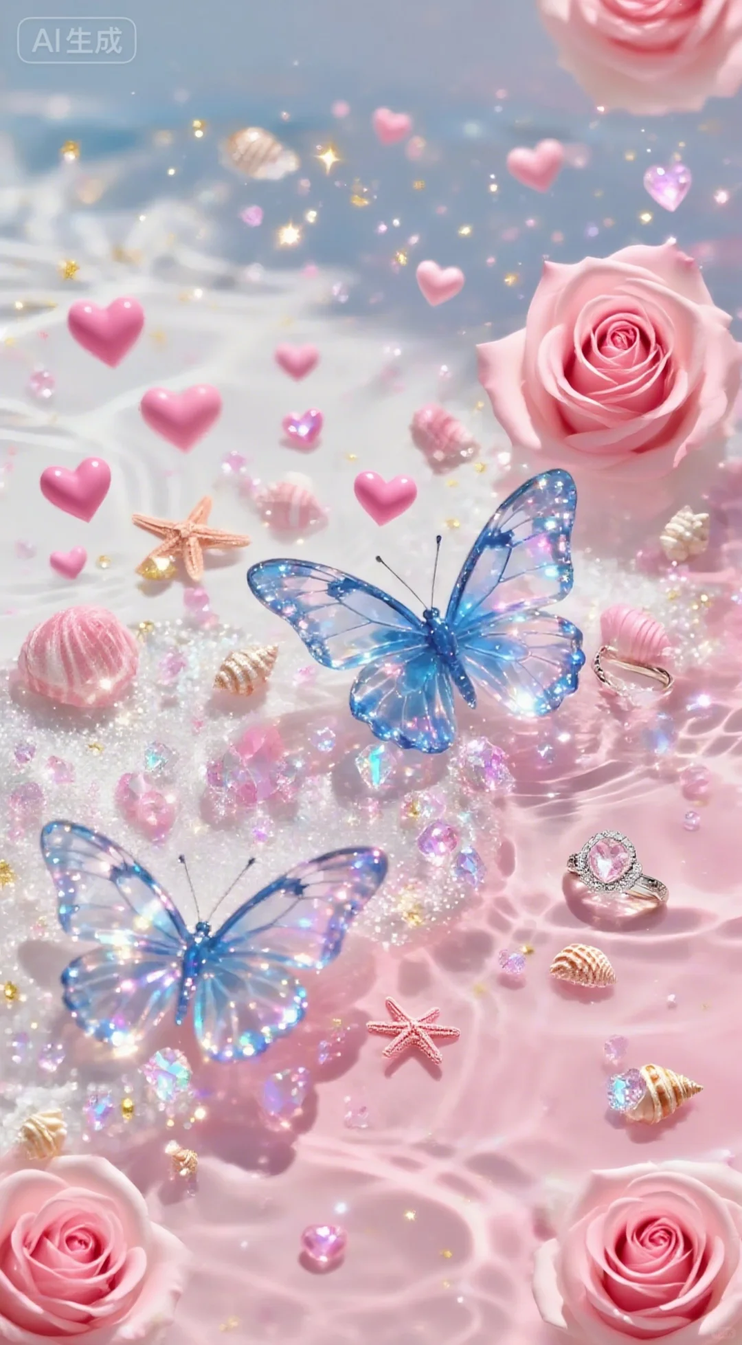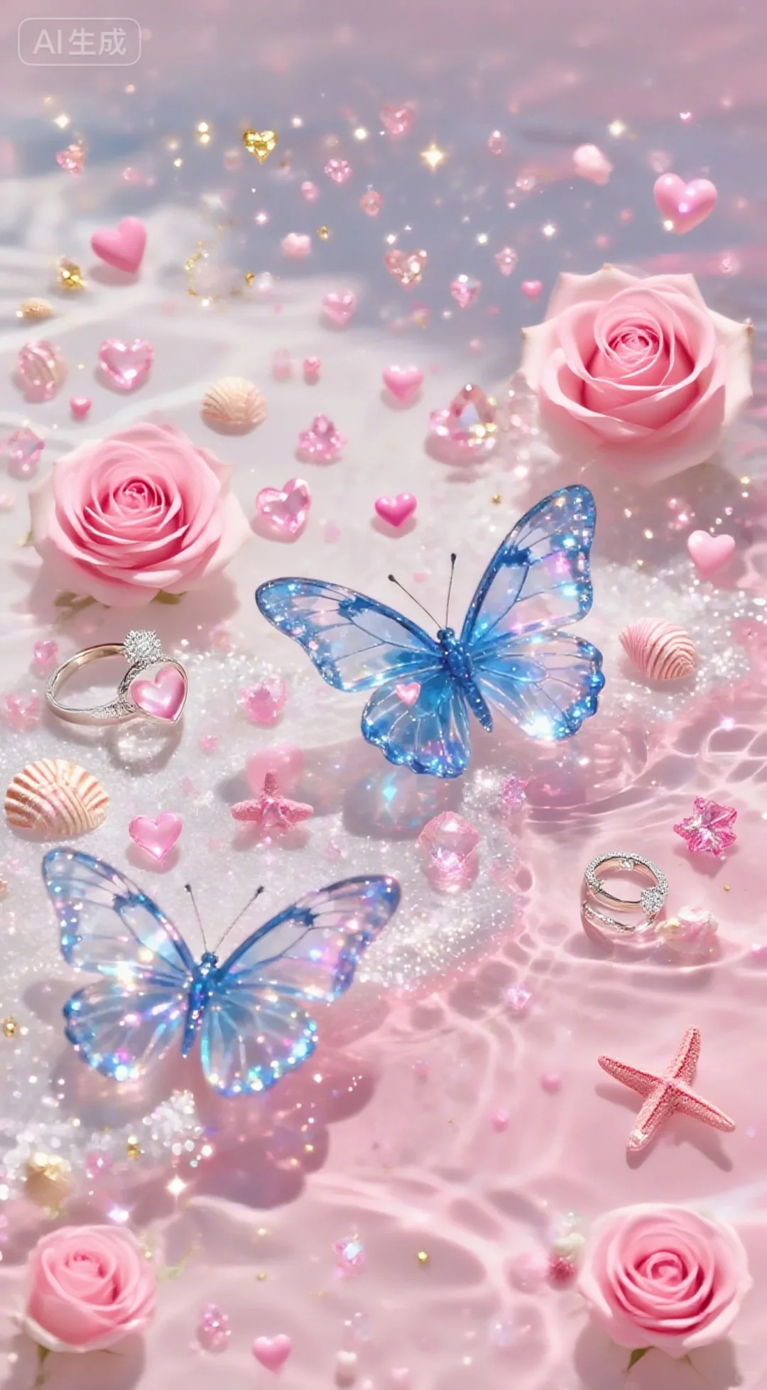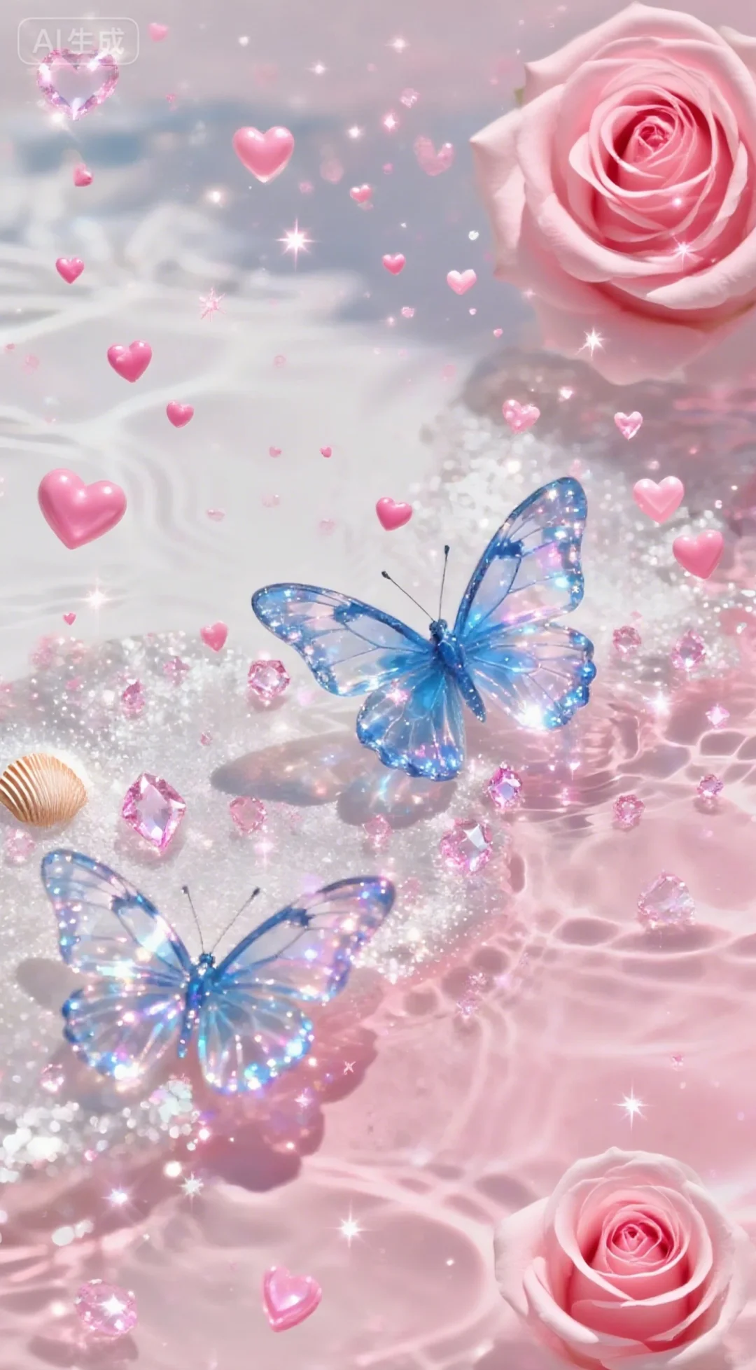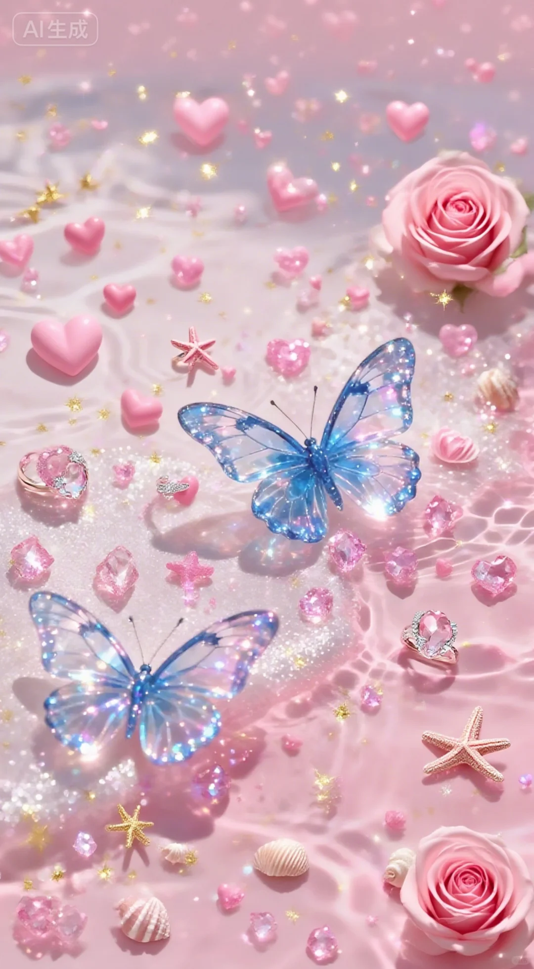 手机壁纸‖治愈的粉色和蓝蝴蝶