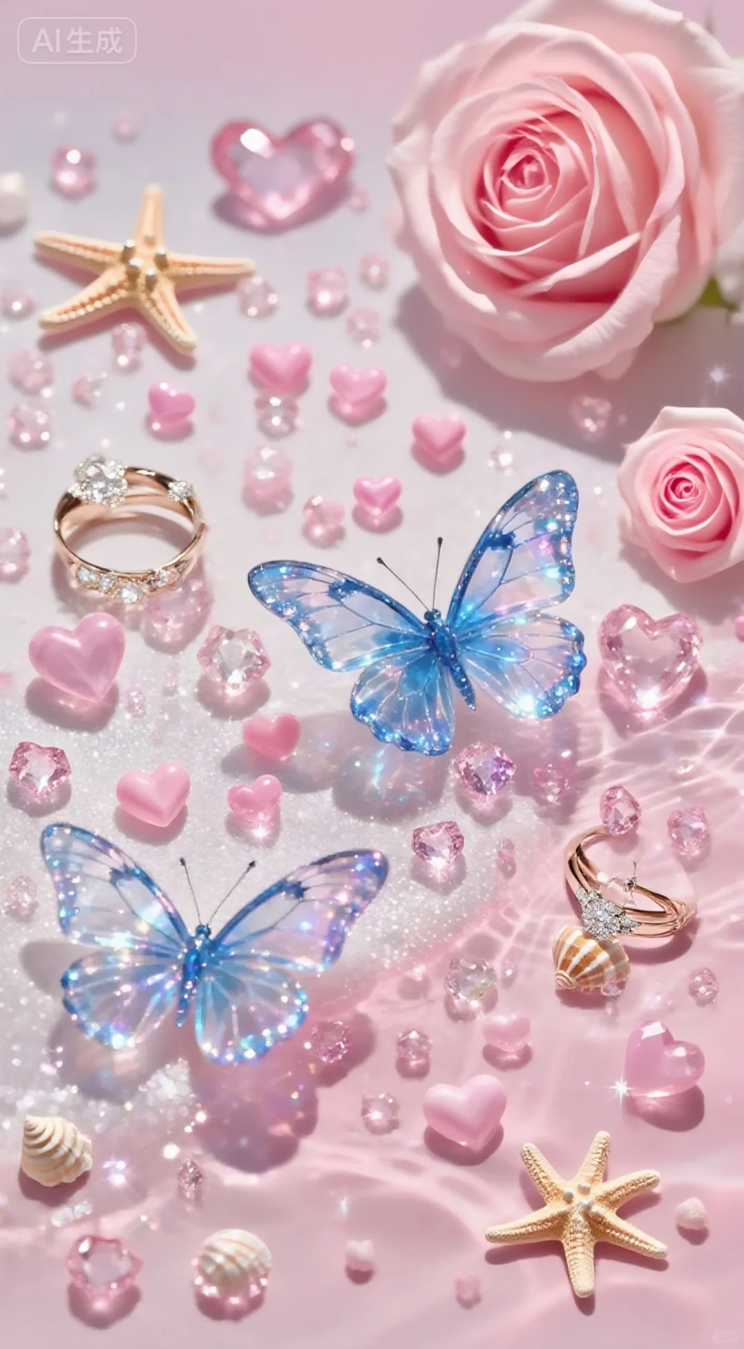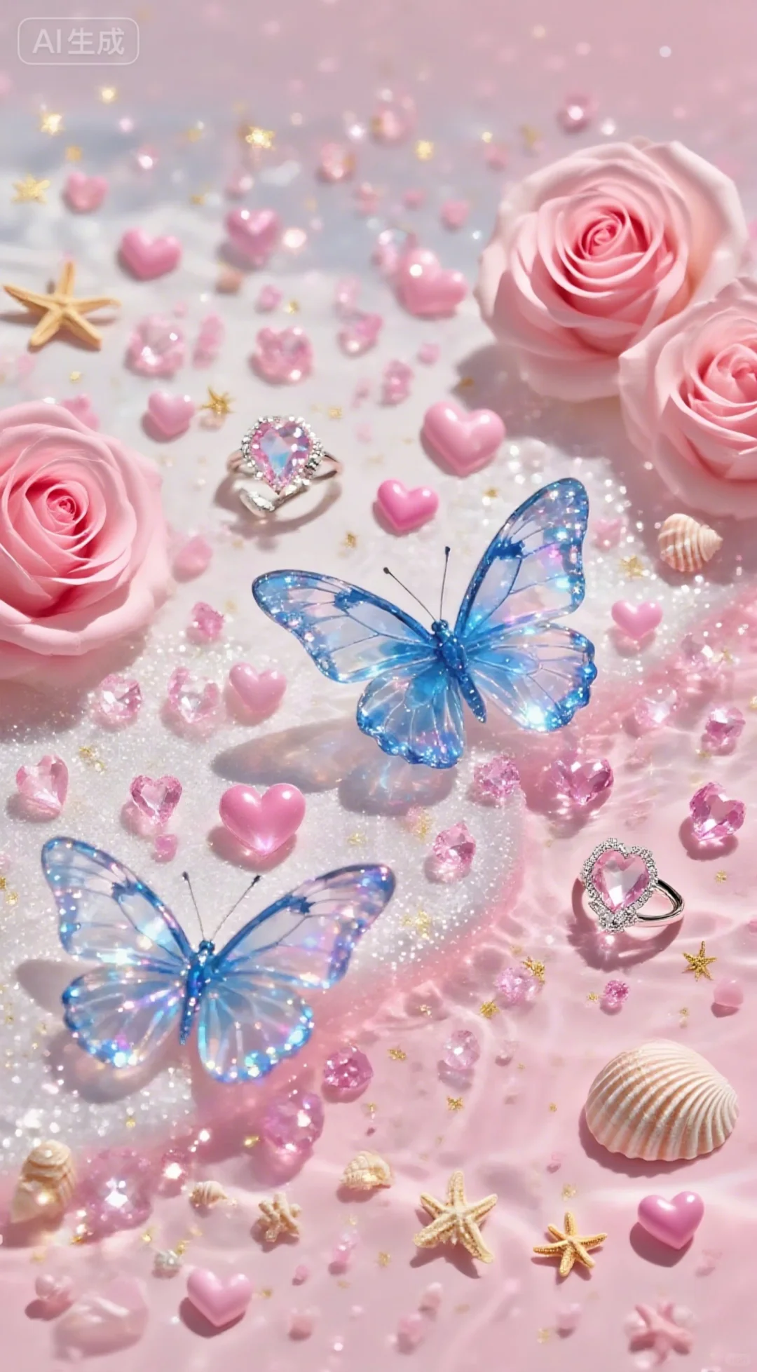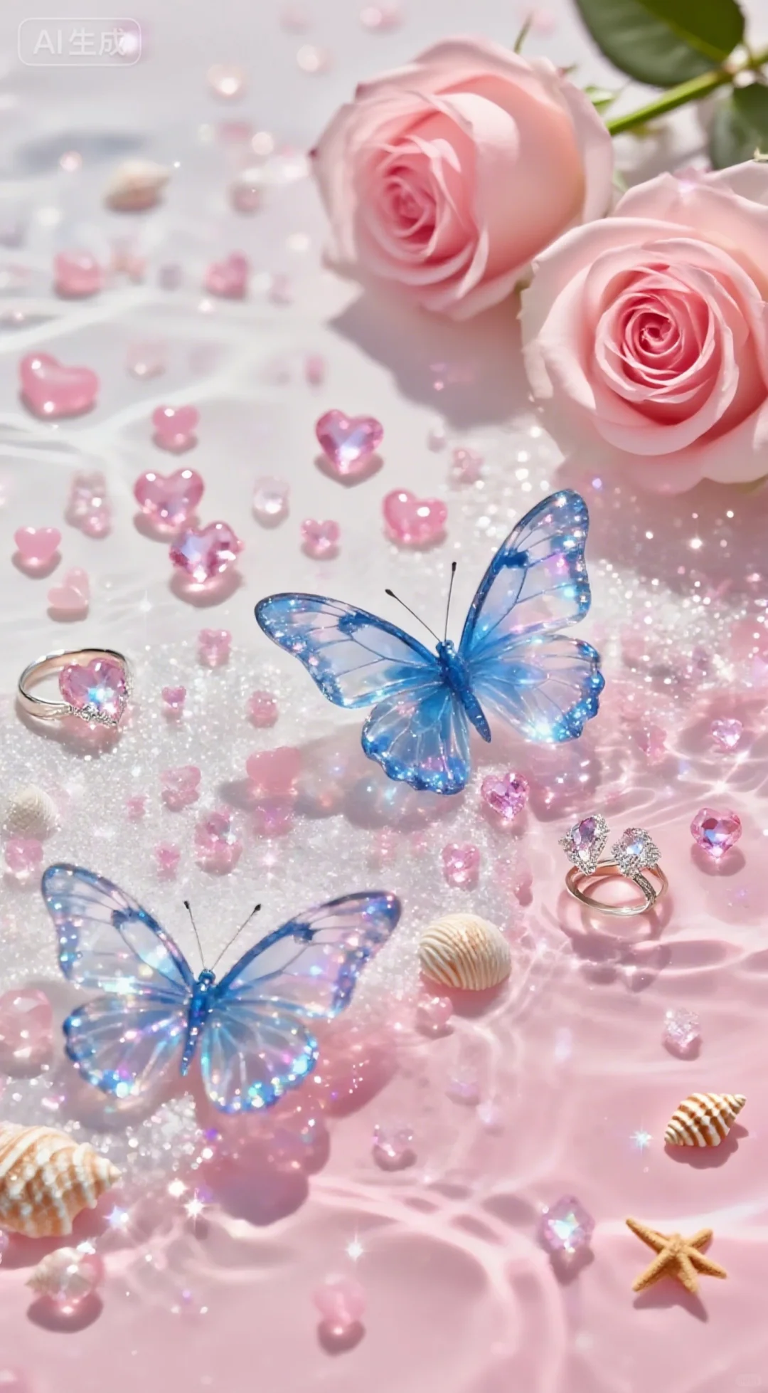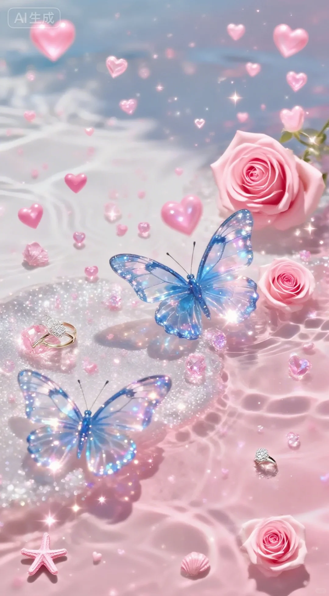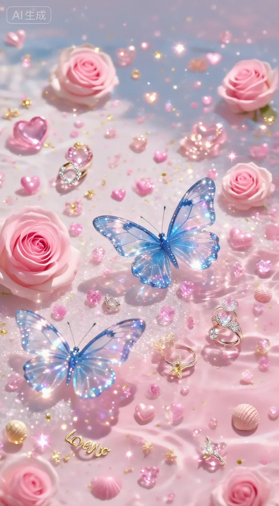 手机壁纸‖治愈的粉色和蓝蝴蝶