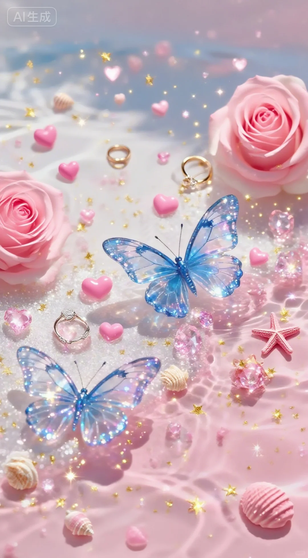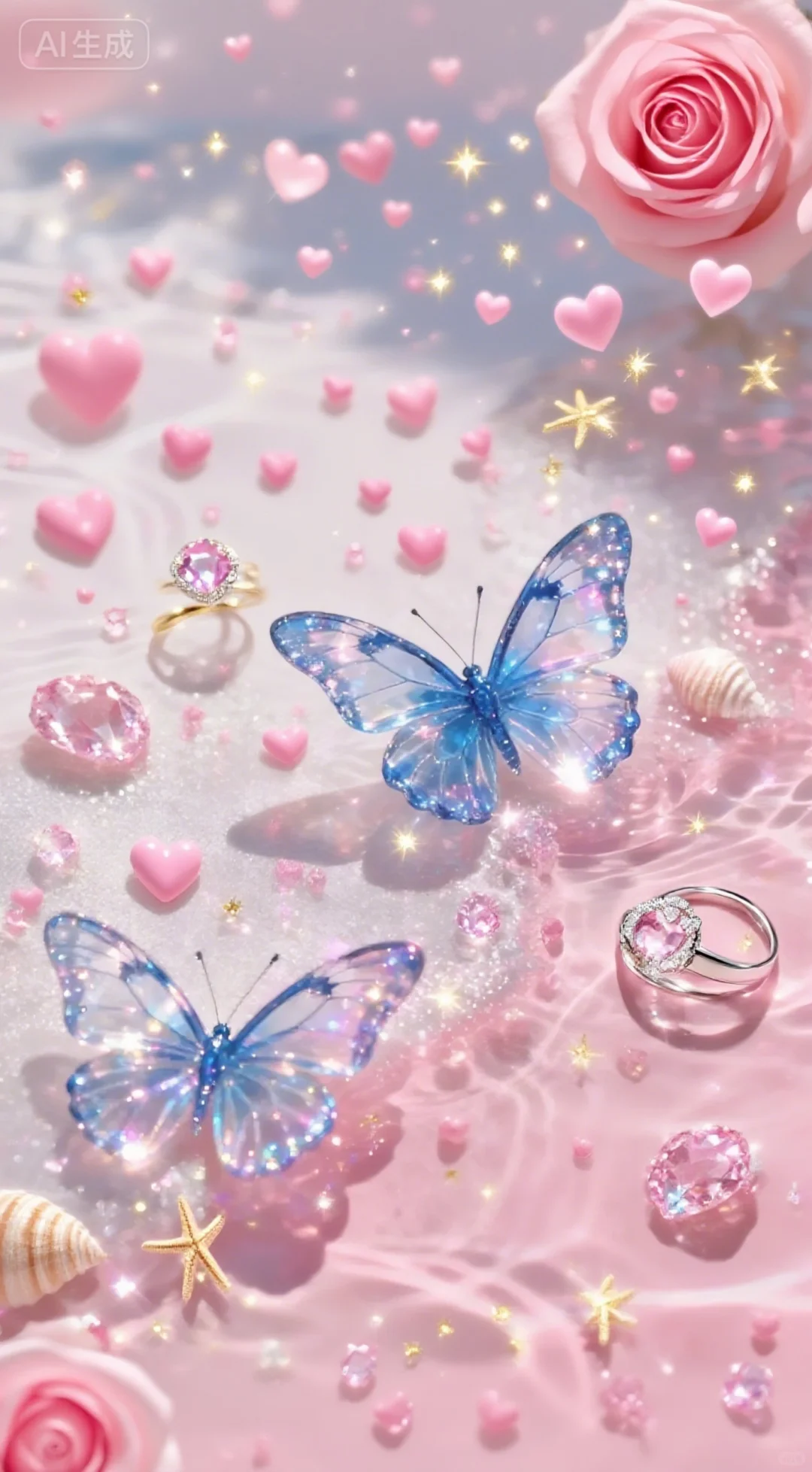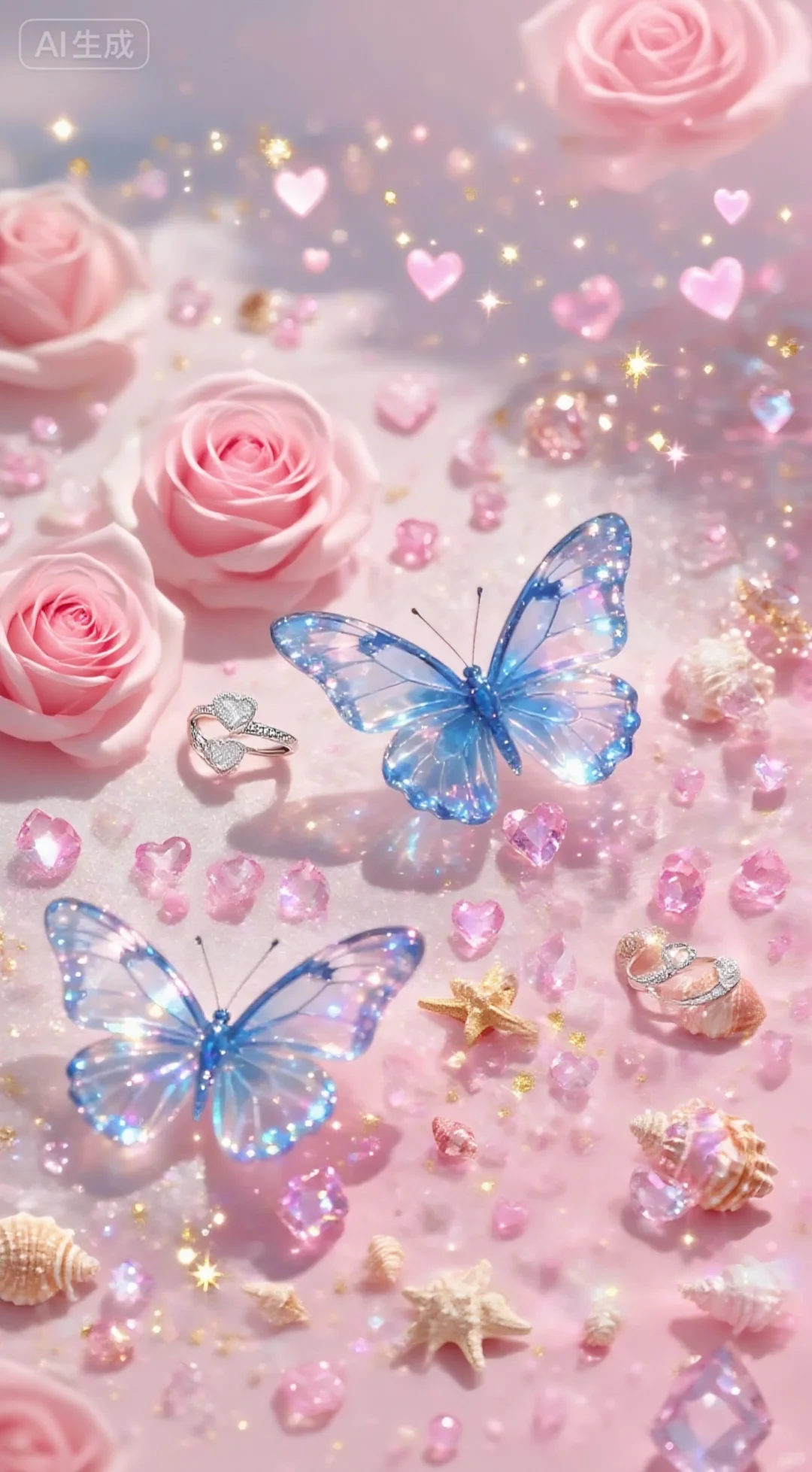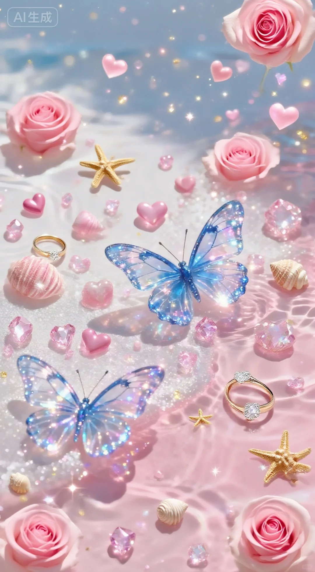手机壁纸‖治愈的粉色和蓝蝴蝶
