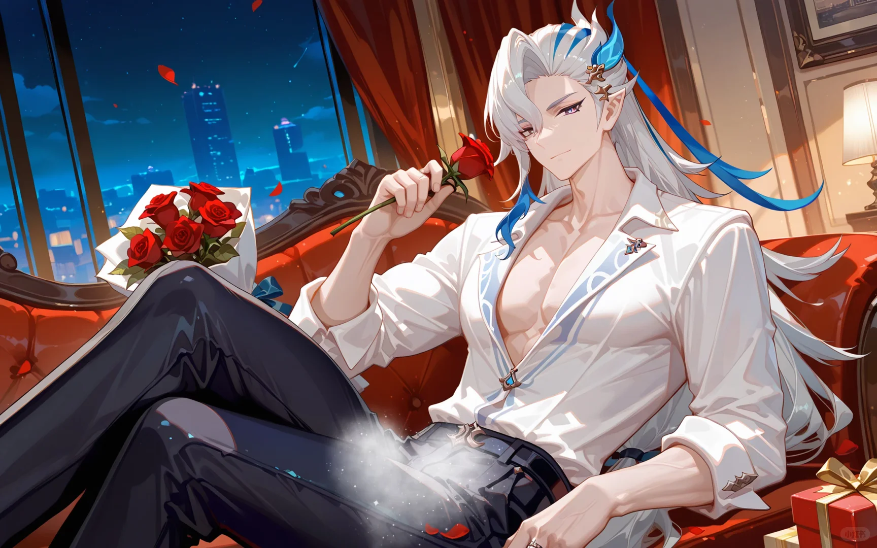 昨晚还西装革履送我玫瑰撩人,