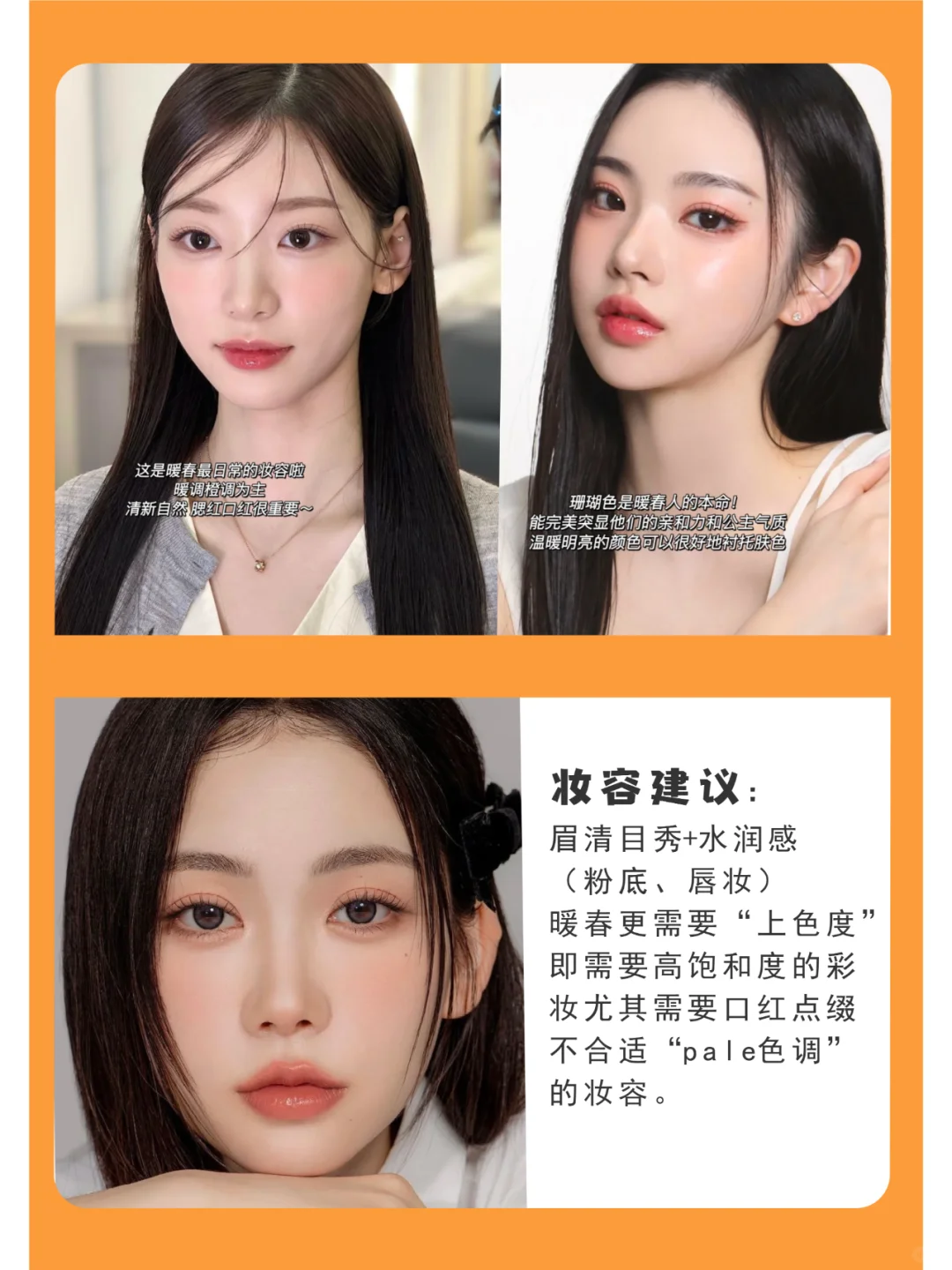 暖春更需要“上色度”,即需要高饱和度的彩妆尤其需要口红点缀,不合适“pale色调”的妆容。