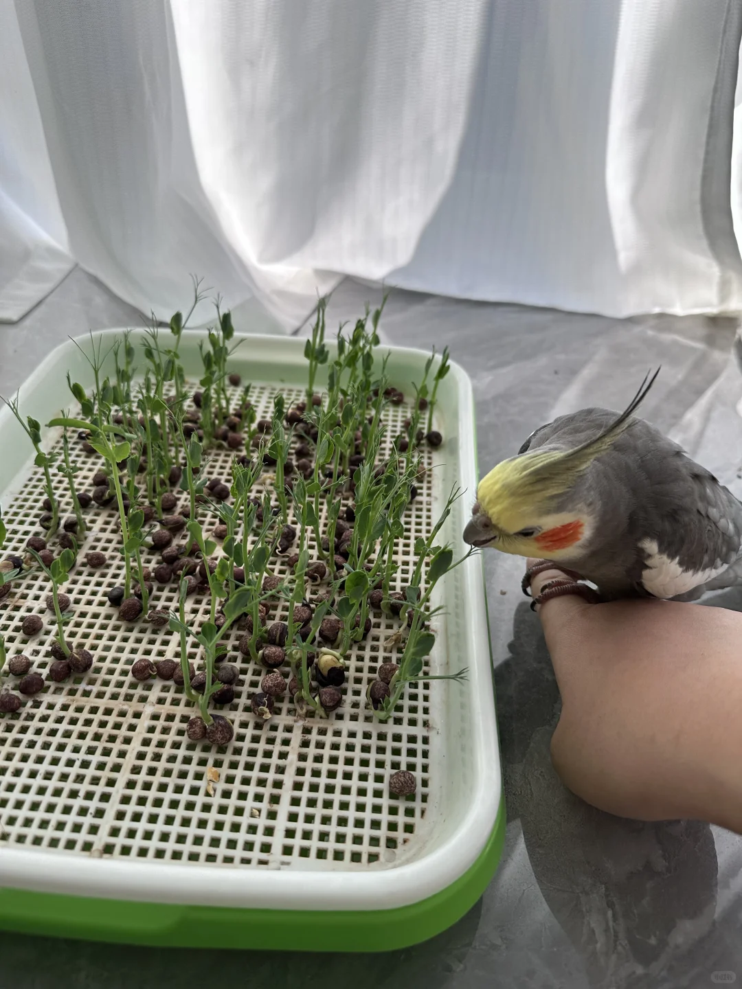 吃剩的粮食可以倒在家里的花盆里,几天就可以发芽🌱,粮食发的芽鸟宝也非常爱吃!