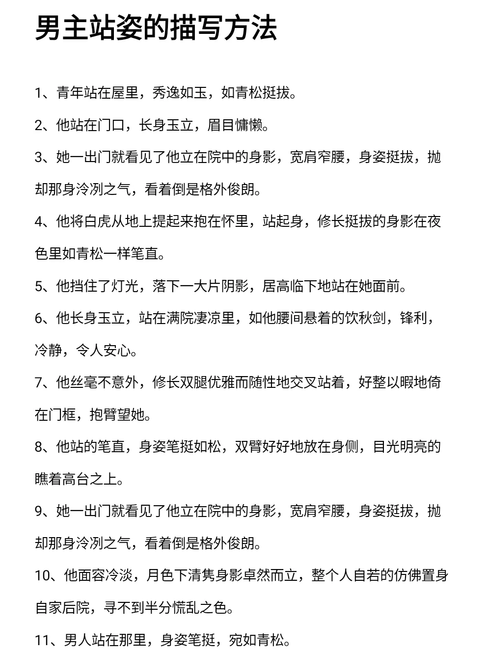 男主站姿的描写方法