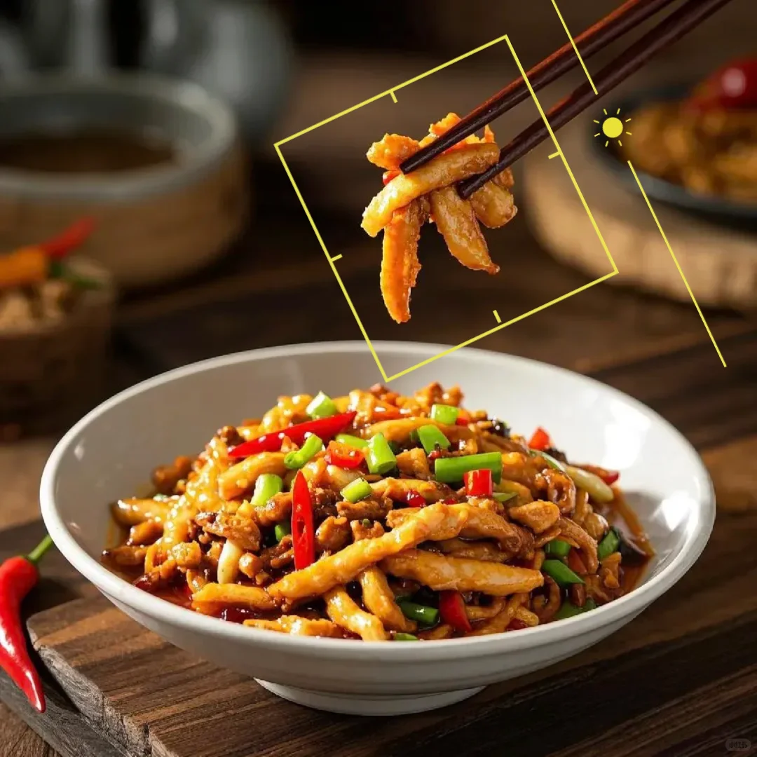 - **高潮段**:木耳的脆、胡萝卜的甜、青椒的鲜在齿间爆破