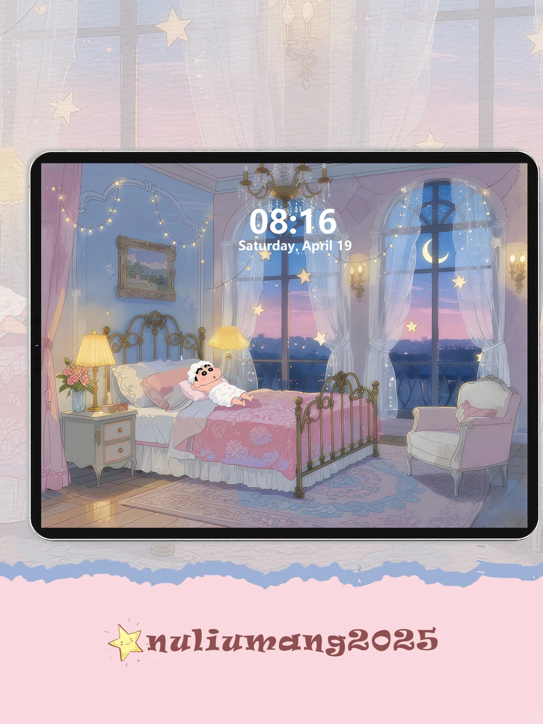 梦幻小屋|蜡笔小新平板iPad壁纸|治愈插画