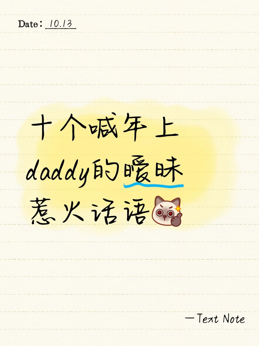 2. 撒娇邀宠型:(他递来东西时,指尖轻蹭他的手)“谢谢daddy~就知道你最疼我了。”