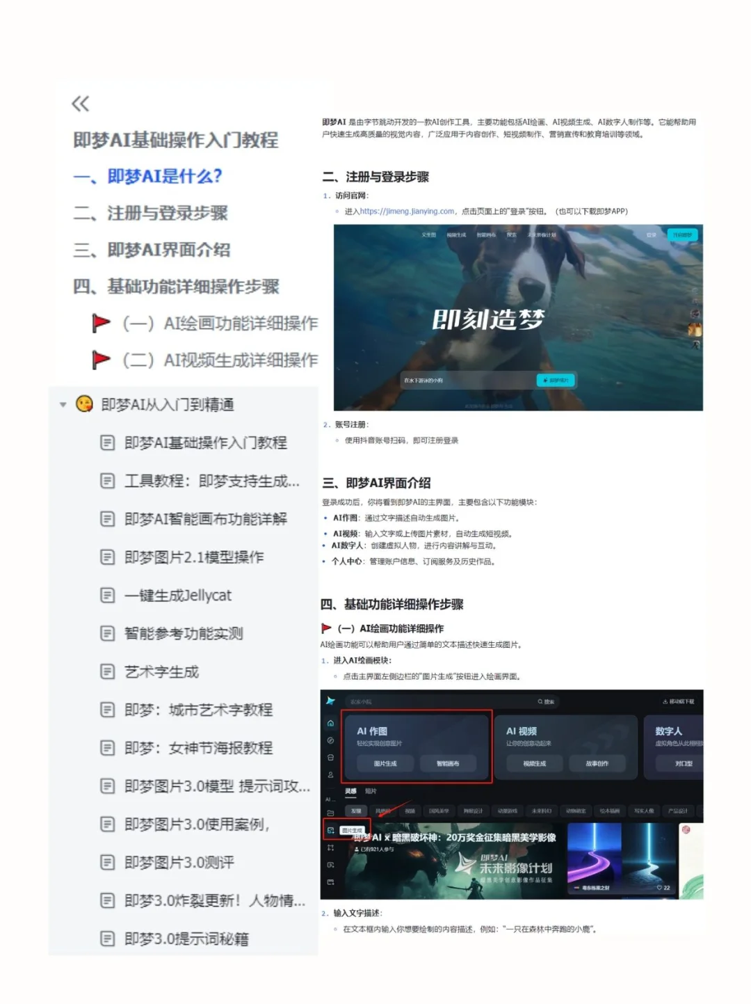 熬夜整理!即梦ai手册0⃣️到1⃣️,附带提示词!