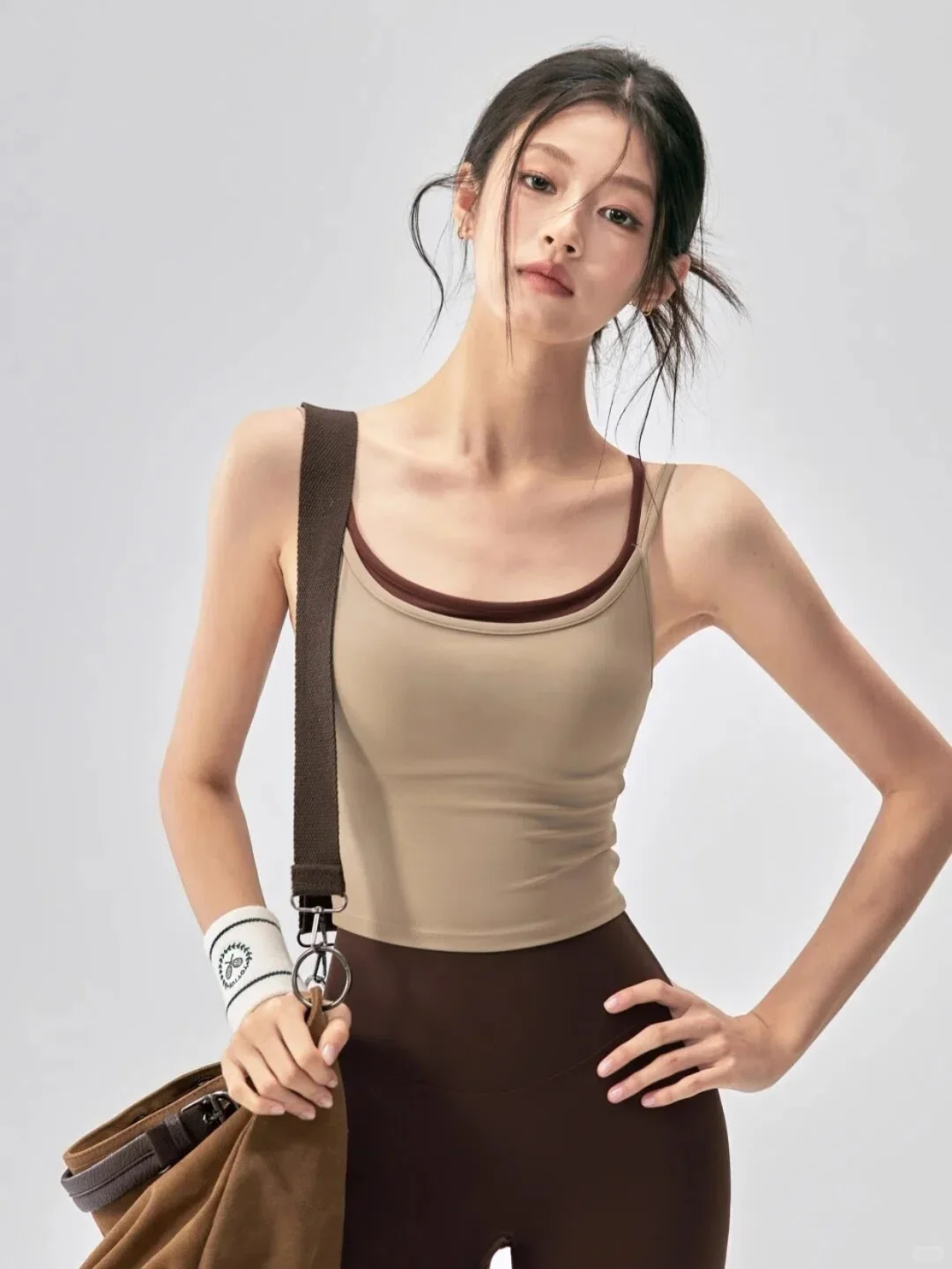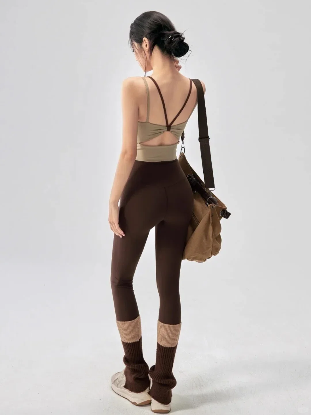 夏日穿搭也超灵活!白天穿短款运动背心 + 瑜伽裤 + 老爹鞋👟,去公园练瑜伽、买冰美式都出片;早晚凉就搭件薄款运动外套,脱下来搭胳膊上还显随性,完全不挑场景!