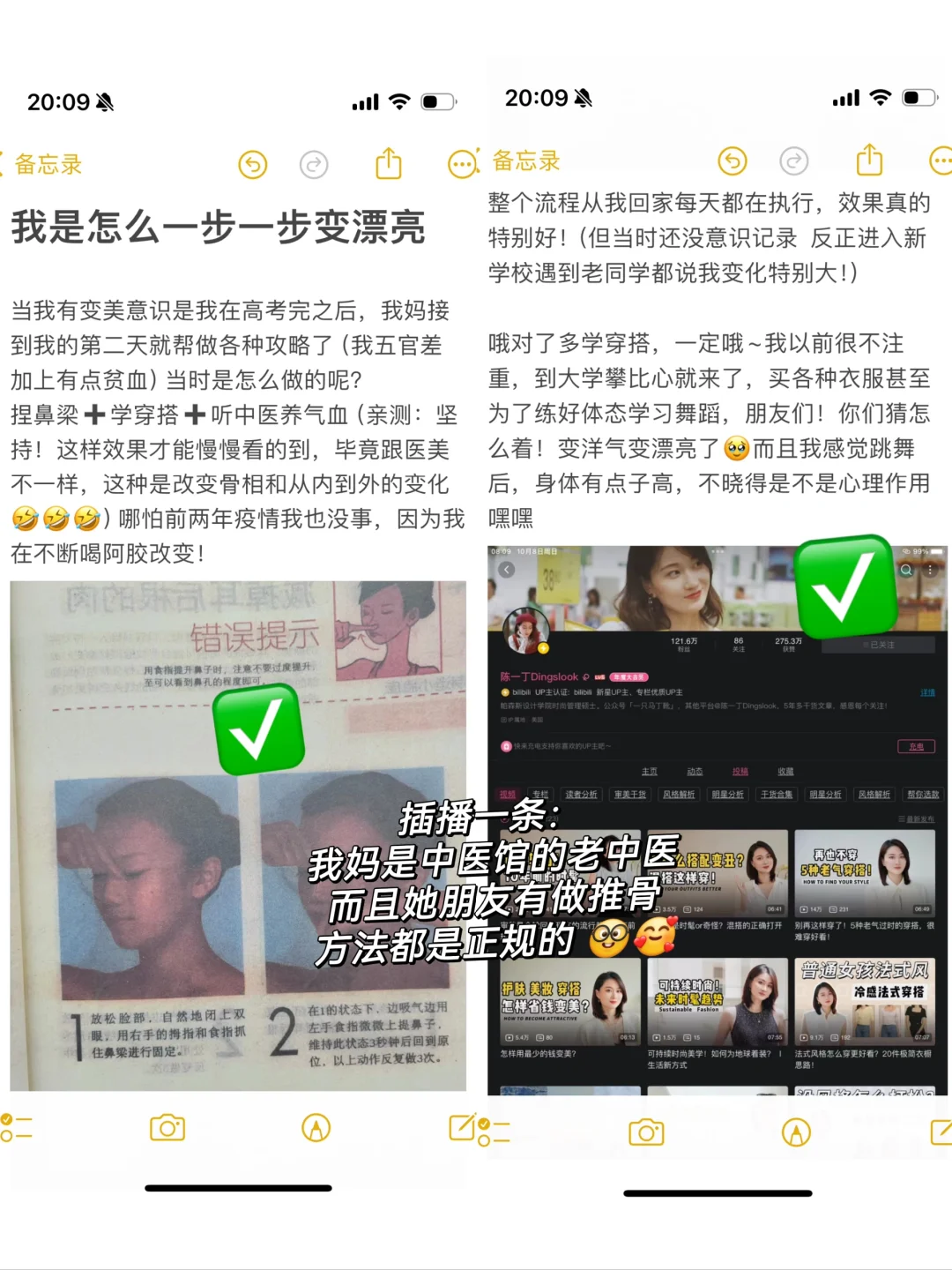 捏鼻梁➕学穿搭➕听中医养气血(亲测:坚持!这样效果才能慢慢看的到,毕竟跟医美不一样,这种是改变骨相和从内到外的变化🤣🤣🤣)哪怕前两年疫情我也没事,因为我在不断喝阿胶改变!
