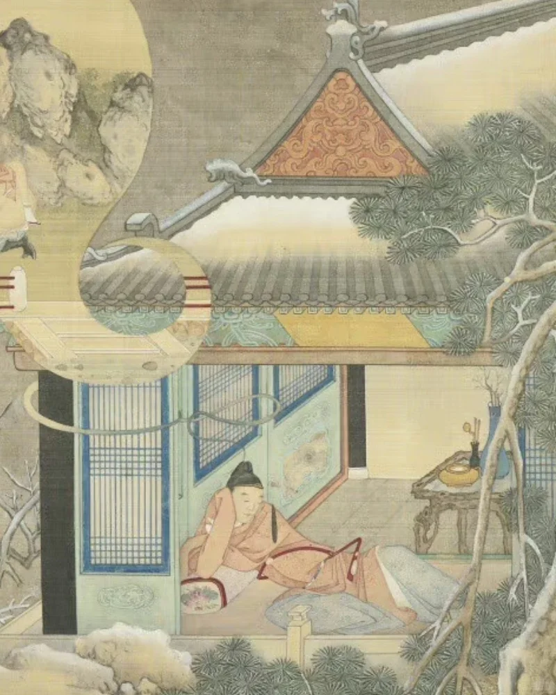 在中国及东亚传统绘画中,直接描绘性爱场景是极少见的(春宫画是一个特殊门类,我们稍后讨论)。因此,“春梦”更多地通过环境、氛围和象征物来暗示。