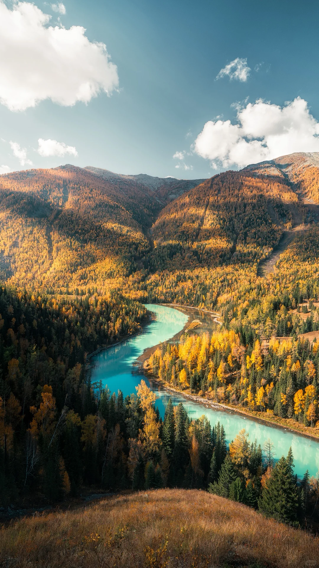 用满屏的方式打开新疆的秋天|左滑查收壁纸