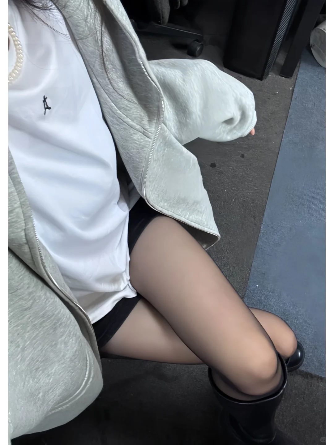 卫衣中和了黑丝的女人味 更喜欢这种搭配