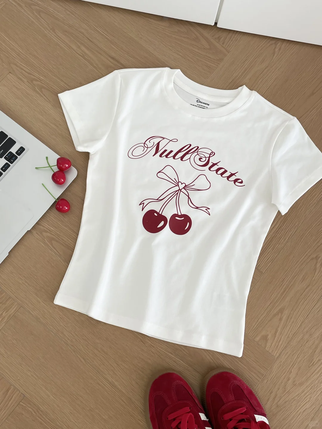 韩系ins少女风!樱桃印花正肩白T也太觉了吧~