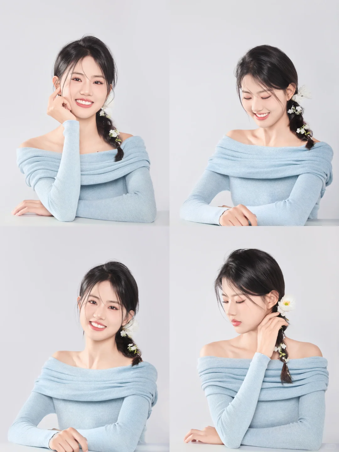 清透的妆容搭配侧马尾🎈展现少女活力。