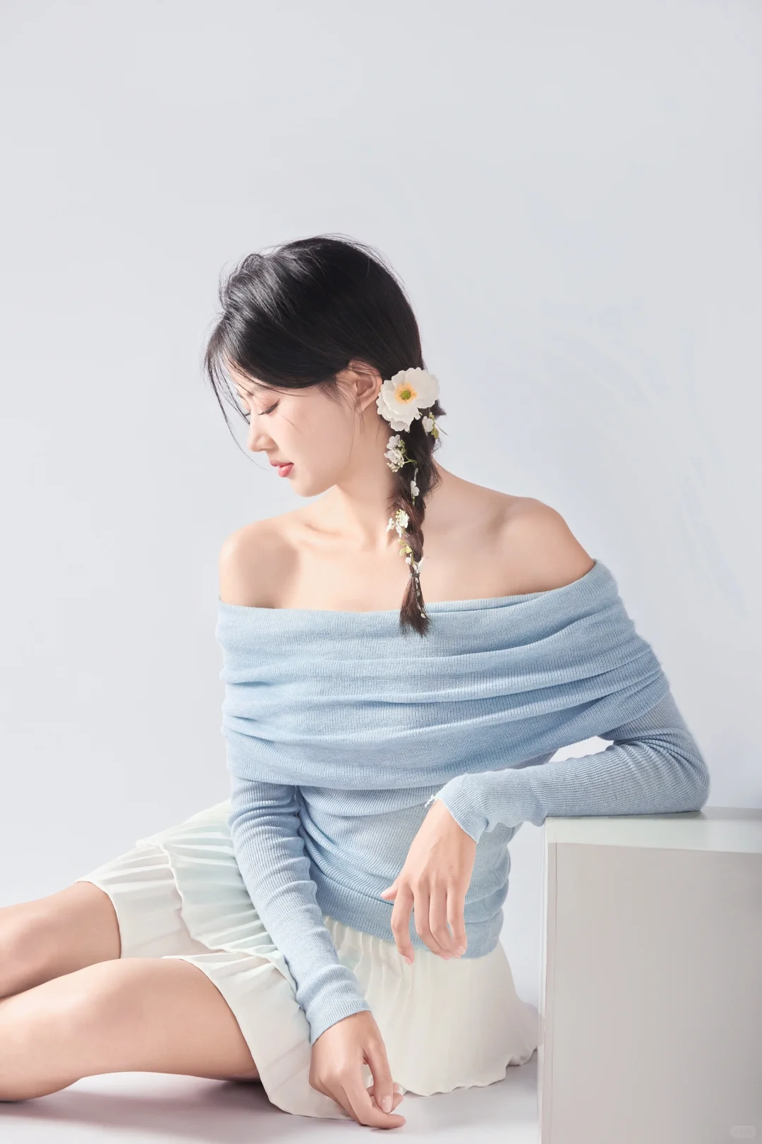🍰奶呼呼蓝色针织衫💙蛋糕裙,甜美又可爱。