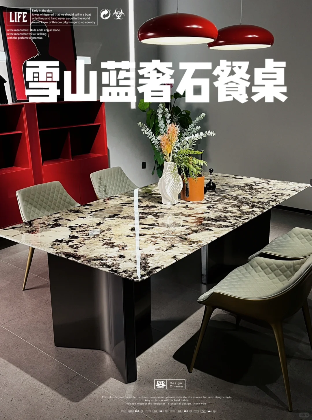 颜值逆天❗️被问爆的雪山蓝天然奢石餐桌‼️