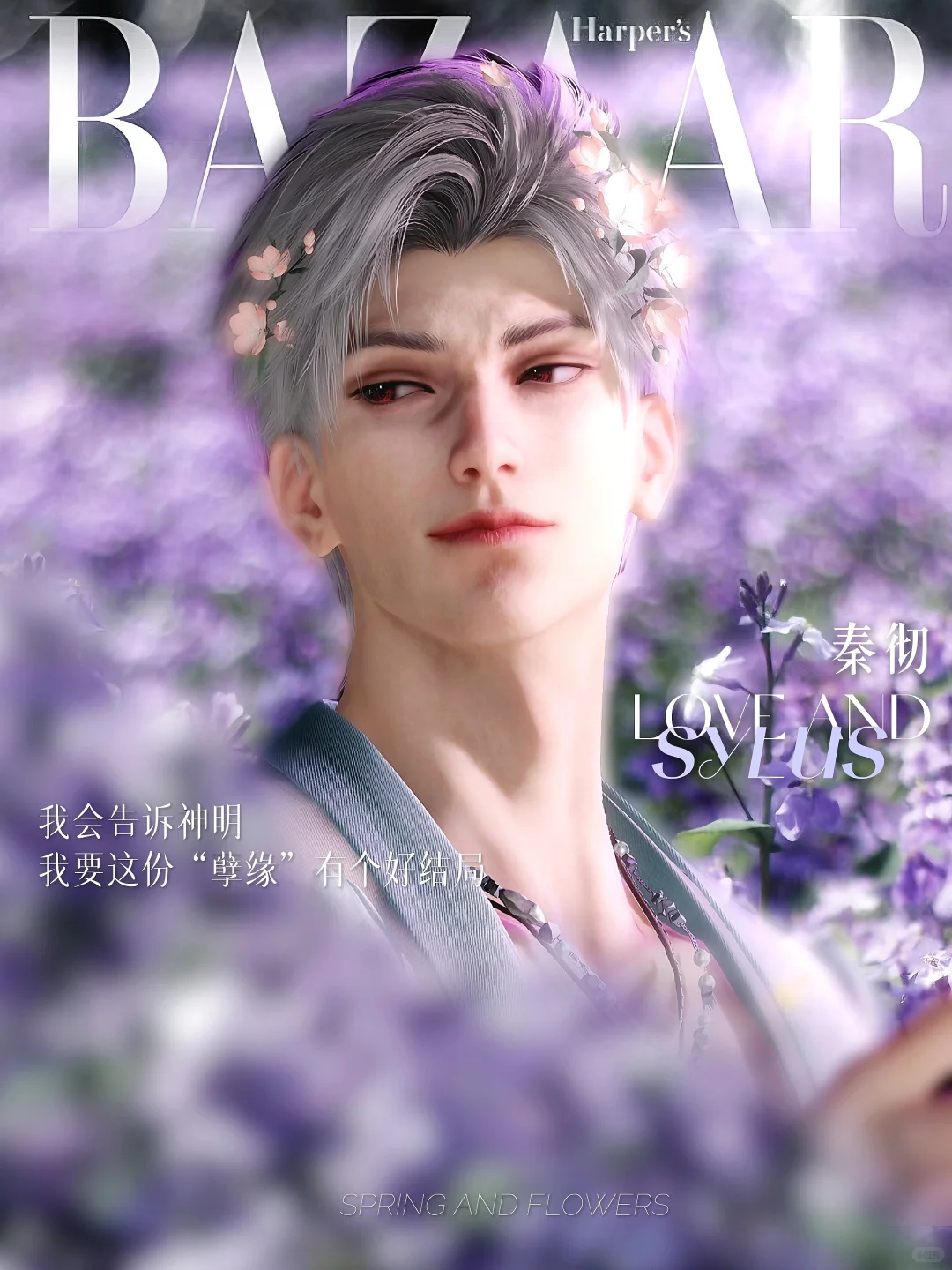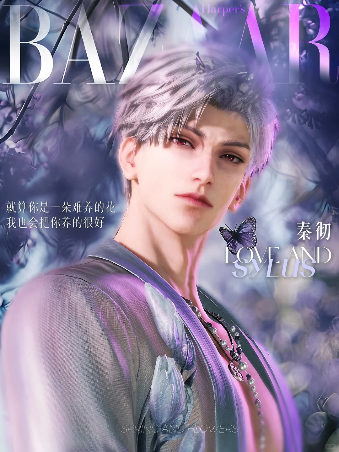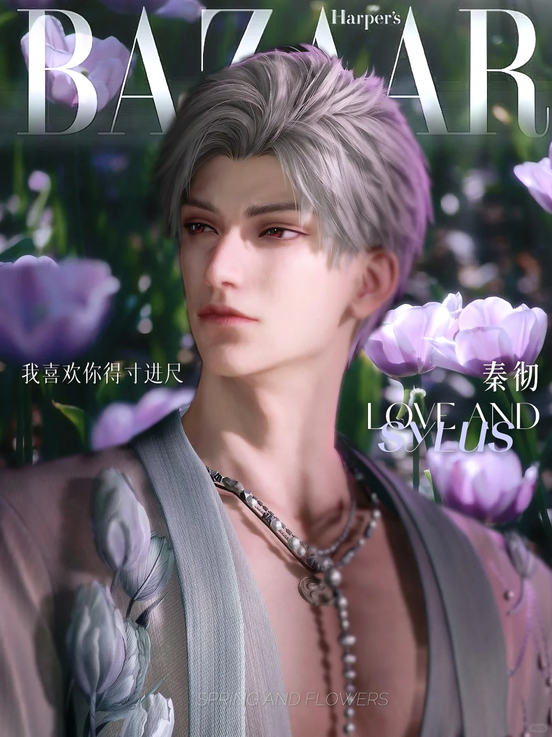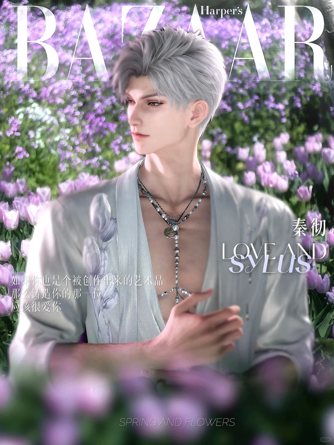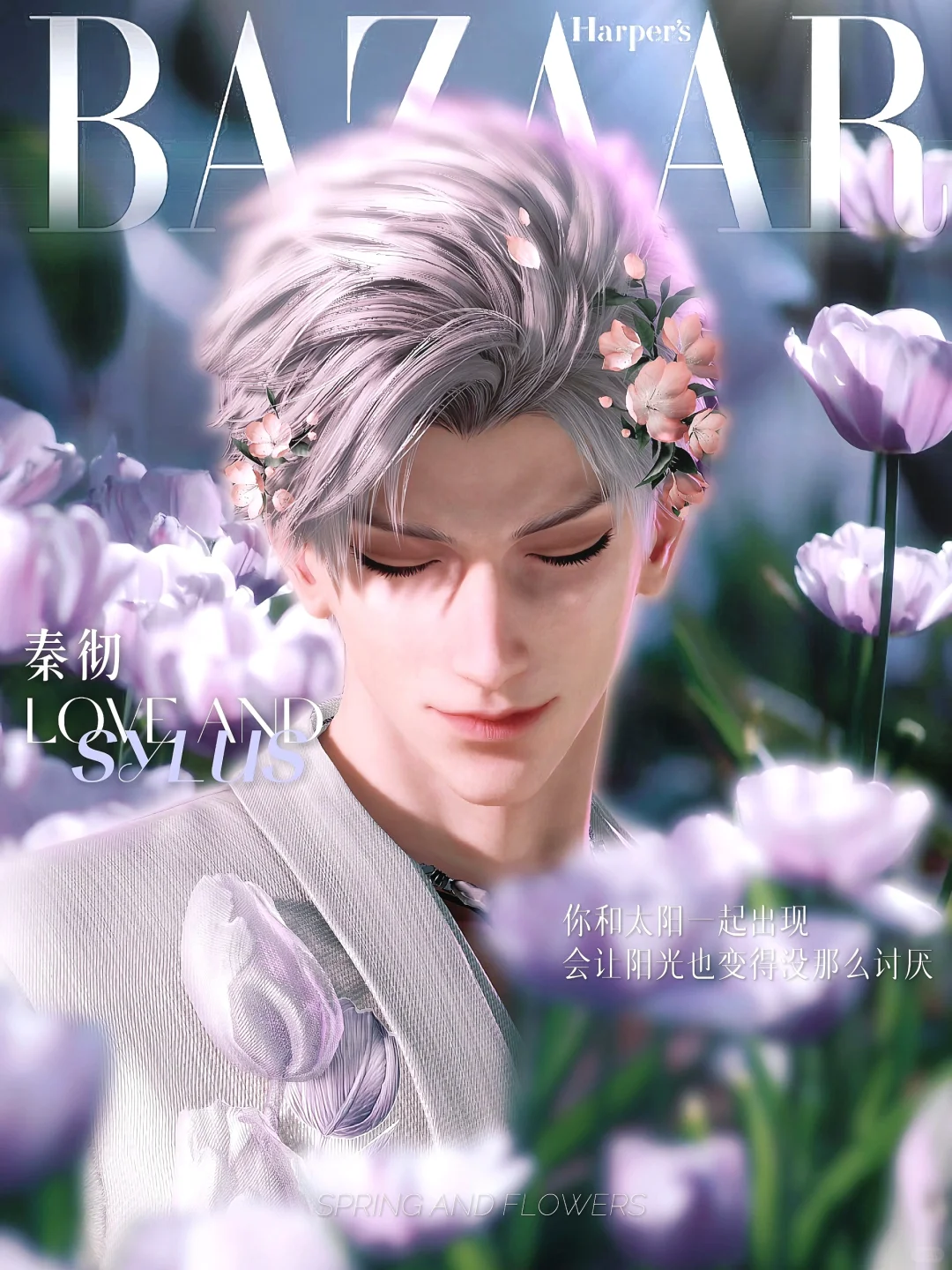 昨晚发的秦彻花花图就是芭莎图的其中之一 一共做了九张 想尝试一下与这套衣服很搭配的芭莎大片 但紫色郁金香的图太难找了 搭配了几个蓝花楹 秦彻太有气质了[完啦R]