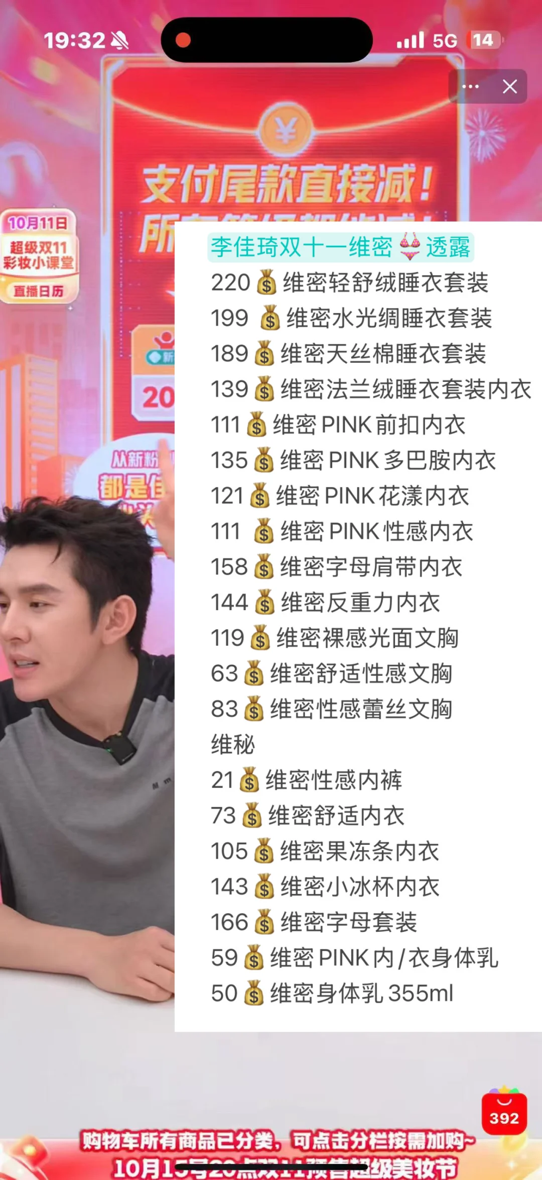 - 下一篇:李佳琦双十一维密补货 预计100➕拿下