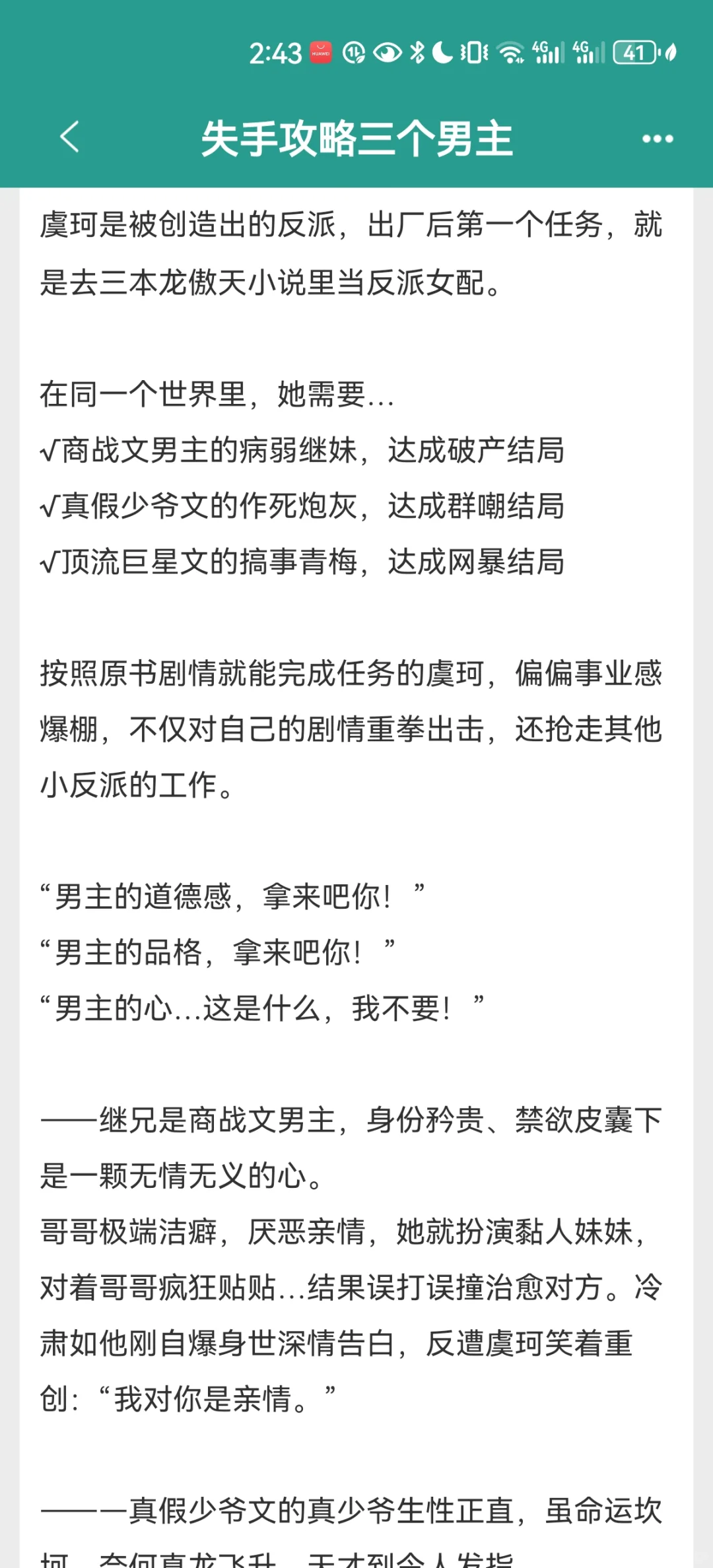 这个和前面两本不一样,这本是个快穿文,不过每个世界同样也有多个男主,描写也很香,男主们超有男德,就是我对快穿文不是很感兴趣。