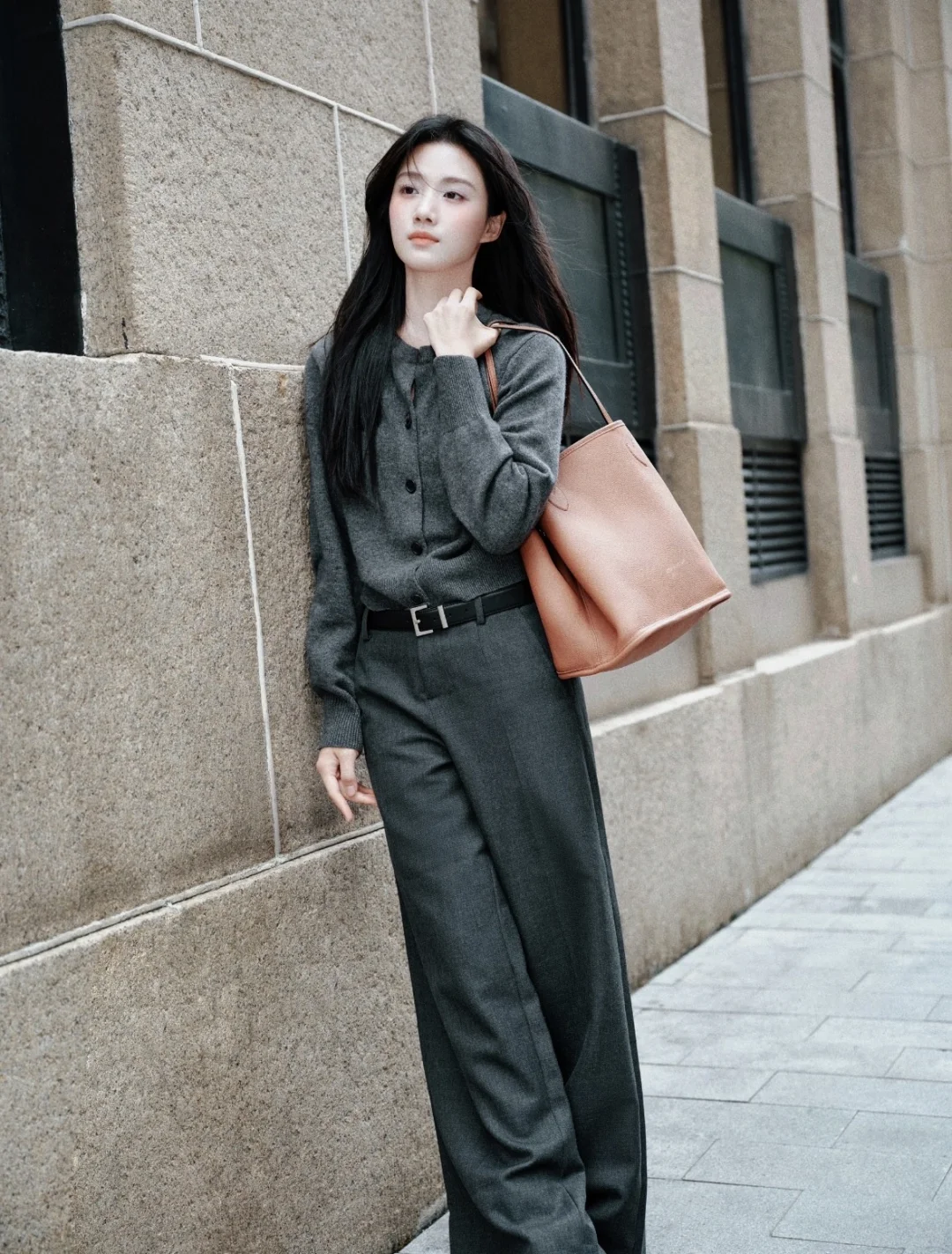 3️⃣:灰色镂空毛衣+黑色下装+米色包包,慵懒松弛感绝绝子,谁穿谁好看的日常穿搭模板🤩