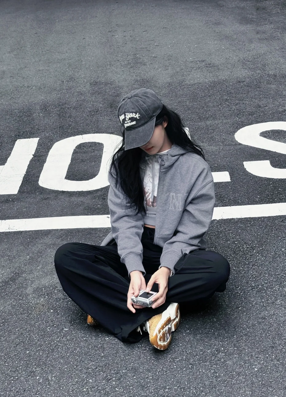 8️⃣:灰色连帽外套+黑色阔腿裤+做旧棒球帽,美式复古风狠狠爱住,这穿搭潮酷到没朋友😎