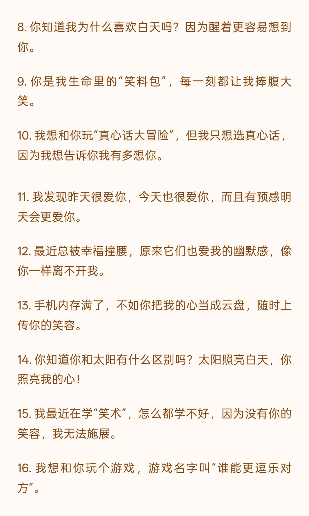 16. 我想和你玩个游戏,游戏名字叫“谁能更逗乐对方”。