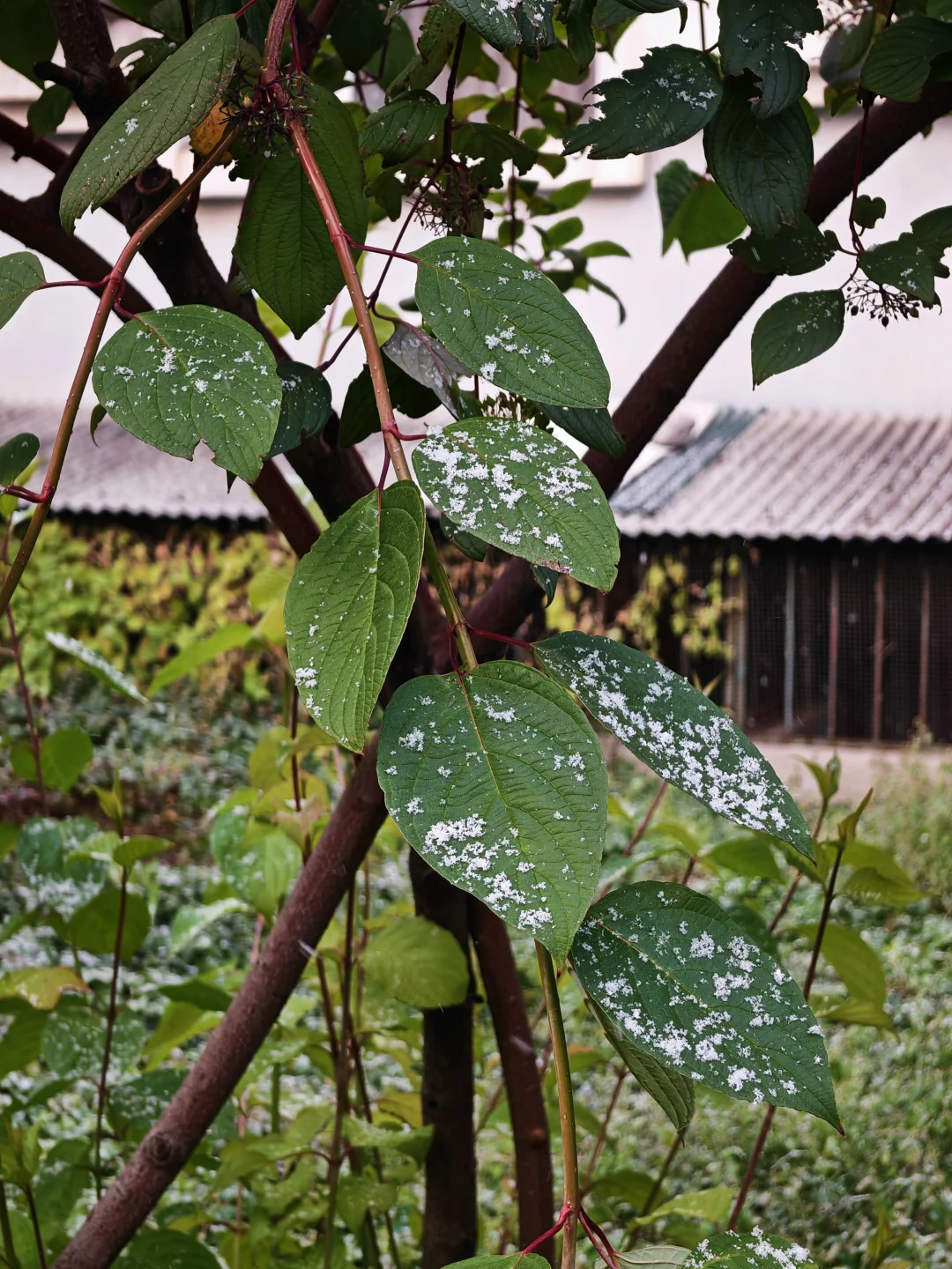 这雪也是奇怪,顶着绿叶