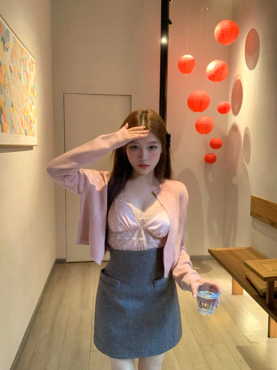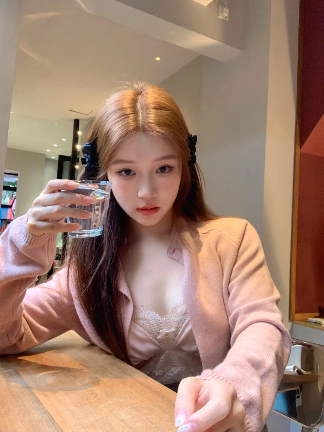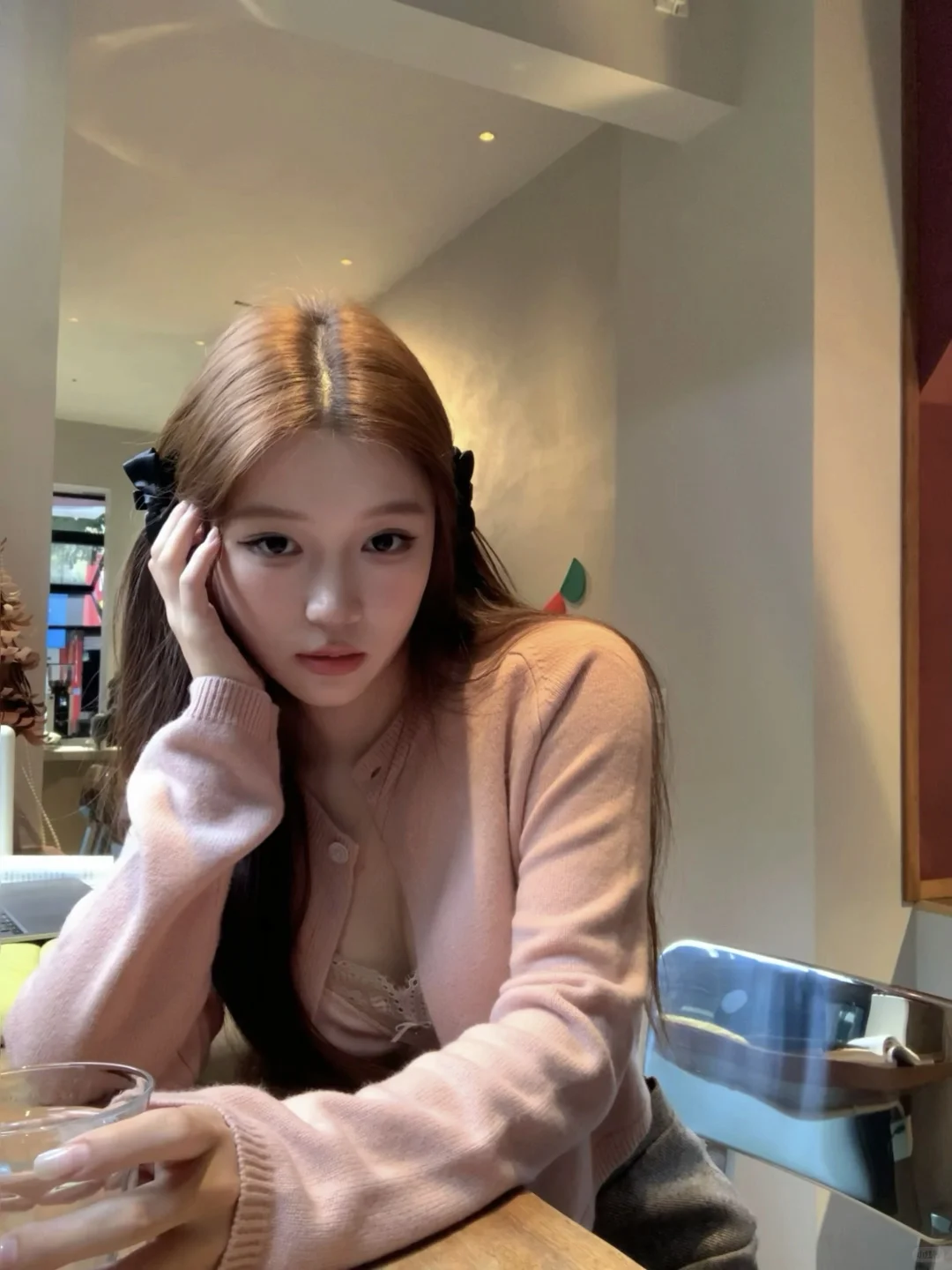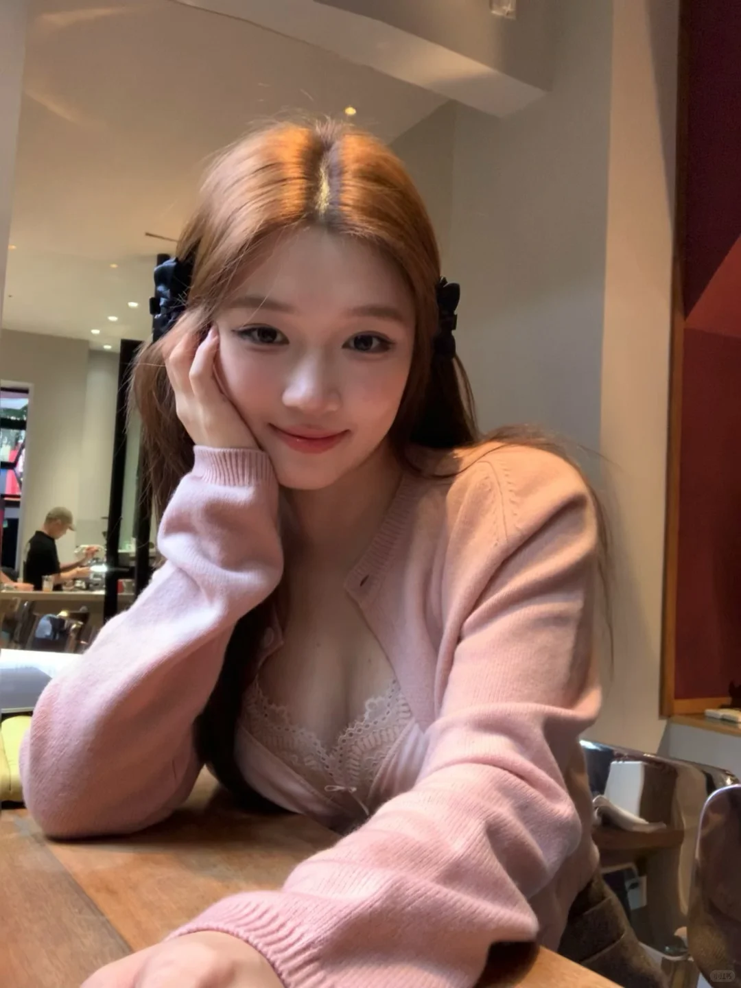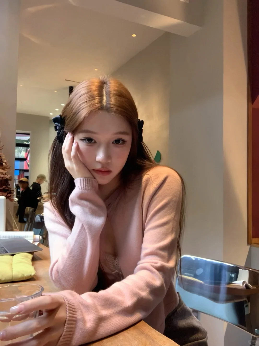 谢许昏暗再加上杏粉色调的毛衣真的好好看