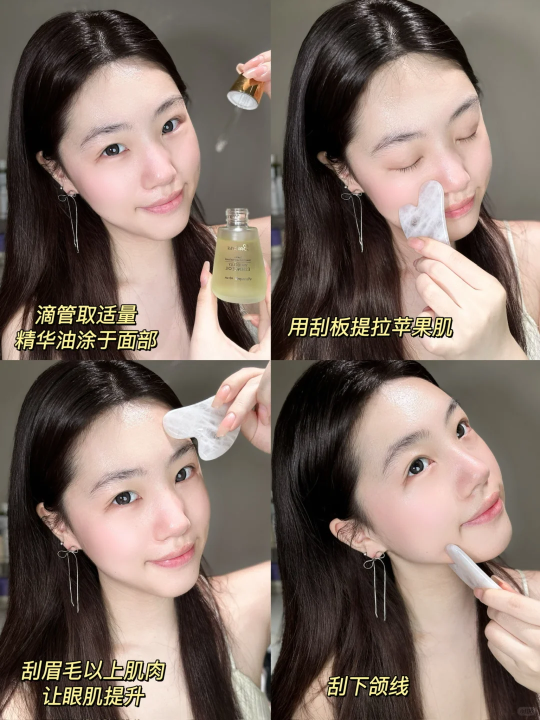 2️⃣使用面霜、ru液时,滴入1-2滴精华油,均匀后涂抹在面部