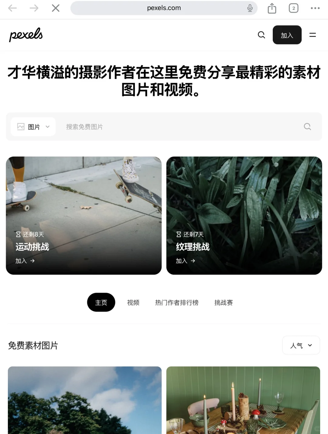 浏览器直接搜pexels就能找到,质量挺好的。关键词检索图片和视频时最好用英文,检索会更精确。用来做文章配图应该不侵权吧