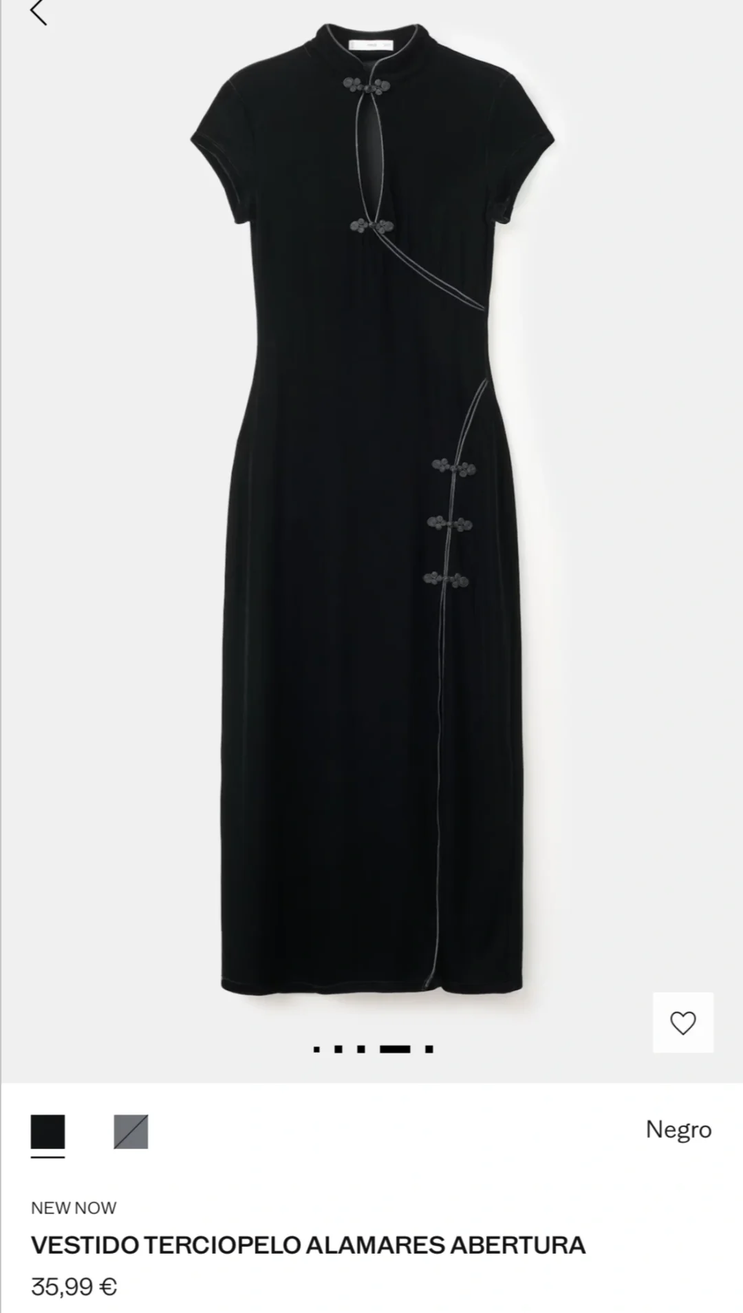 刷到Mango上新的一条“VESTIDO TERCIOPELO ALAMARES ABERTURA”——中文翻译大概是“天鹅绒盘扣开叉连衣裙”