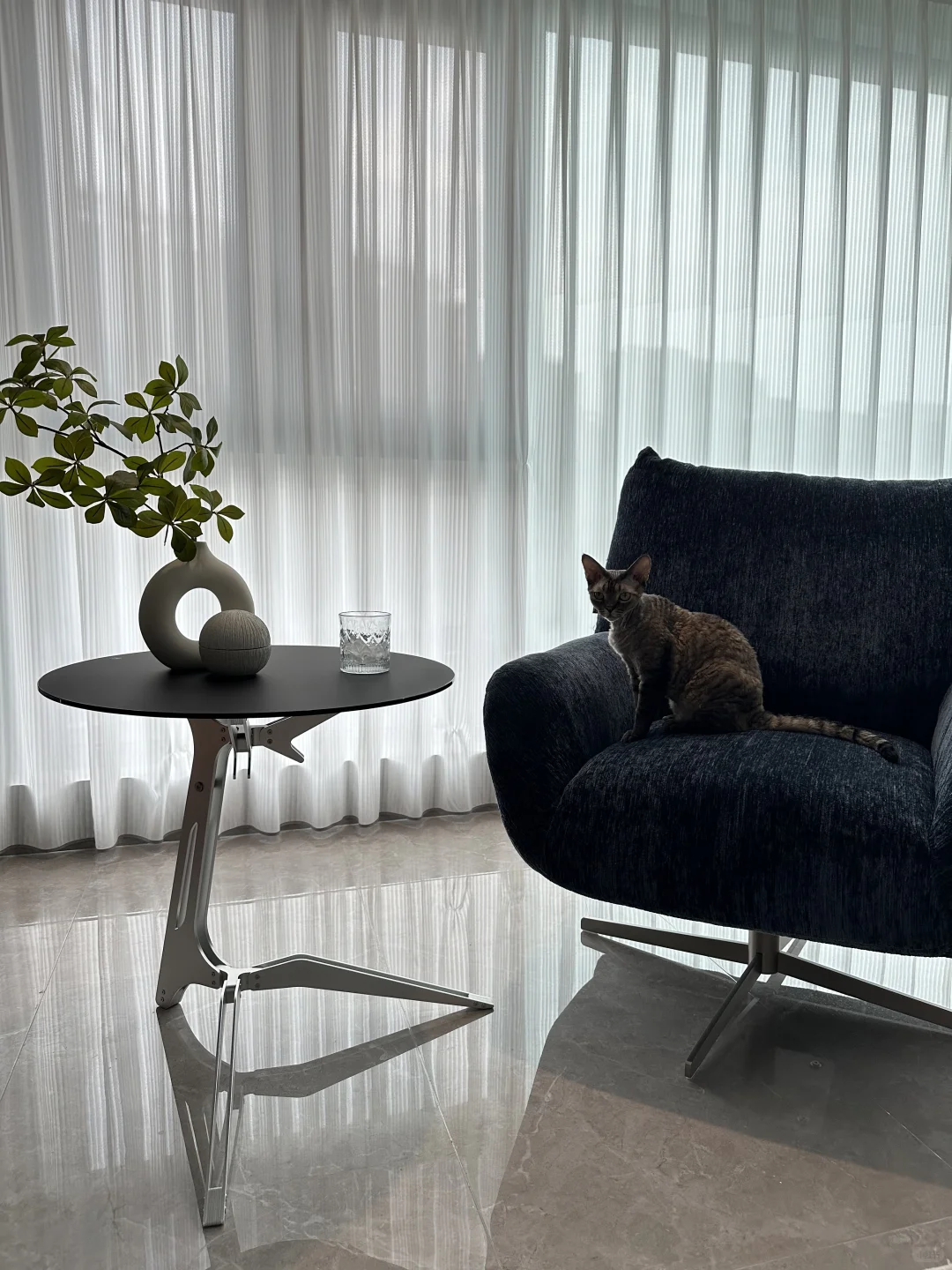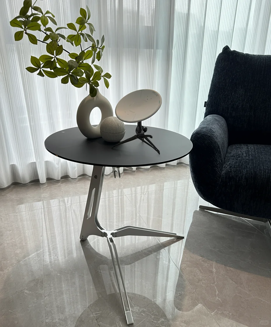 每当我把冰啤酒杯往几面一搁,耳边就幻听滋滋电流杂音,仿佛这货还在试图拦截隔壁老王的Wi-Fi信号。茶几腿是三条修长的合金支脚,稳定性堪比三角洲战术手册里的标准防御工事,猫蹦过去都晃不出一滴咖啡。某次哥们来家看球,盯着边几突然冒出一句:“你这玩意儿…是不是能召唤空投?”我深沉点头:“嗯,召唤啤酒空投。”