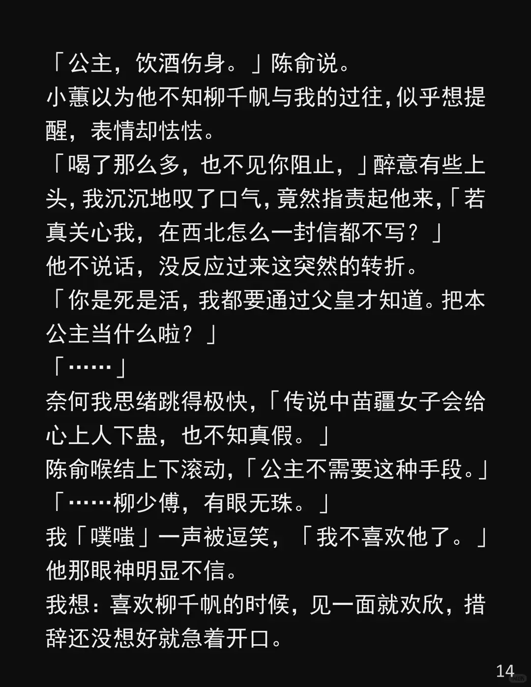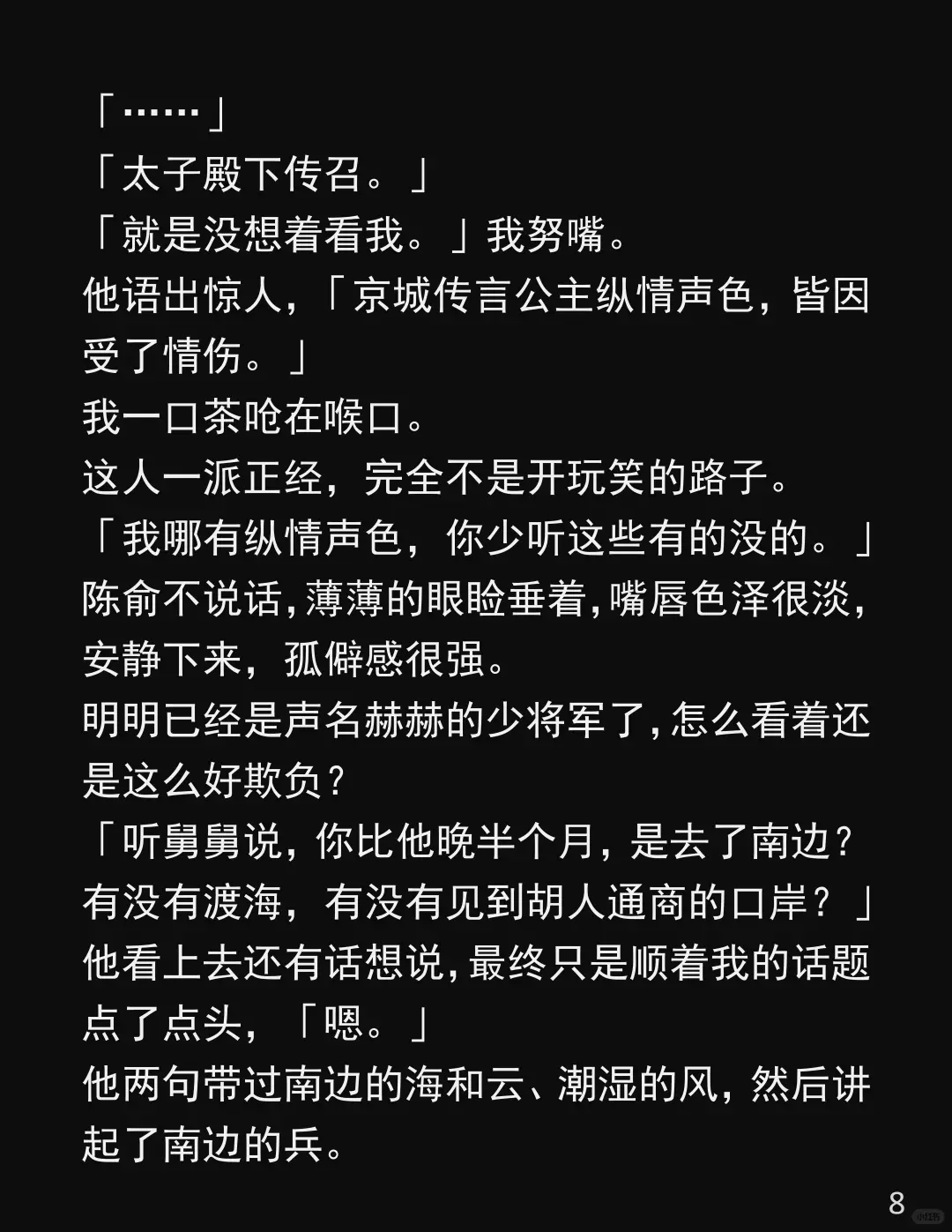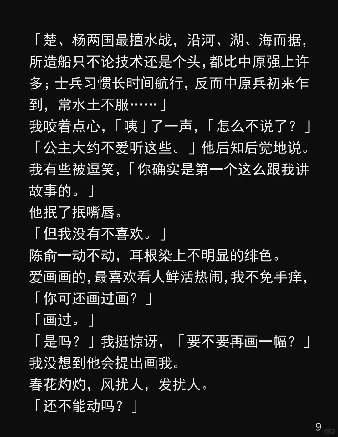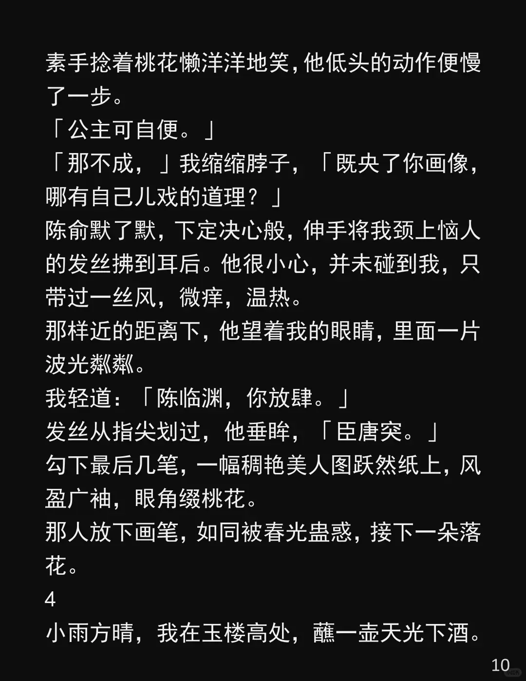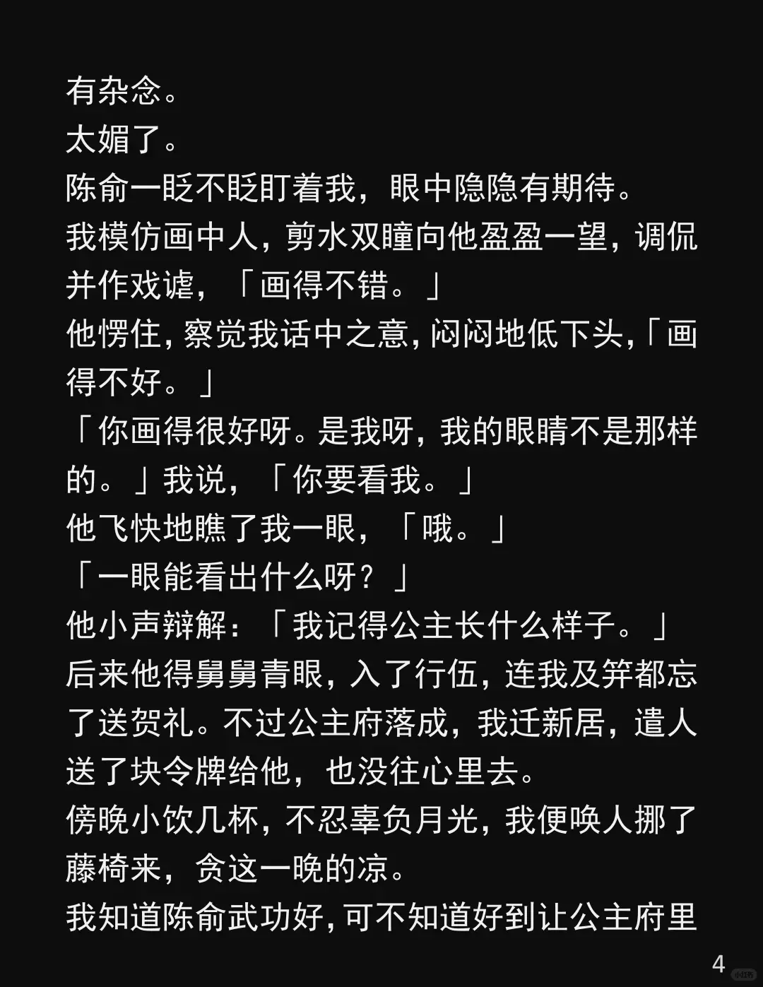 他学画画时眼里全是我,画的我眼尾带媚,被我戳穿就闷头认错;我及笄他连夜赶回来送贺礼,翻我墙头时还嘴硬 “男女有别”;西北打仗三年,我以为他早忘了我,却在他中毒时听见他哑着嗓子说 “公主,我怎么可能不喜欢你”。