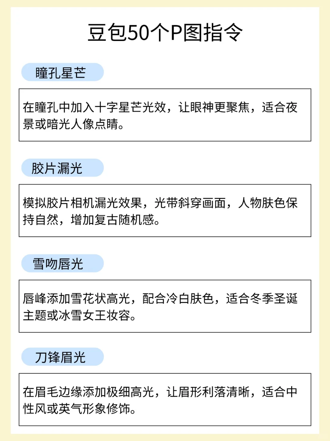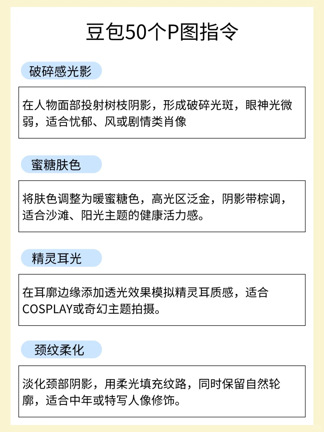 宝子们,谁懂啊!发现了豆包超绝的50个P图指令,简直是P图小白的救星,各种风格都能轻松拿捏,直接把照片质感拉满,我不允许还有人不知道,建议狠狠收藏!