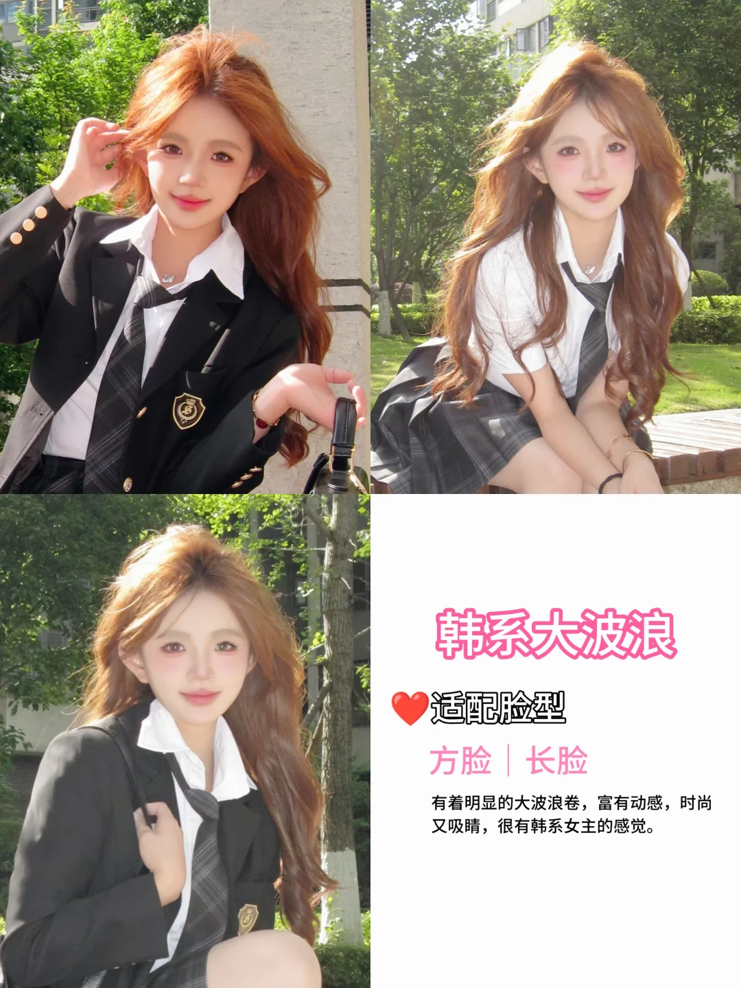 4. 韩系波浪🌊波浪卷富有动感,时尚吸睛,很有韩系女主感~适配方脸、长脸,可修饰脸部轮廓,增添柔美感;圆脸避雷,会显脸更宽。
