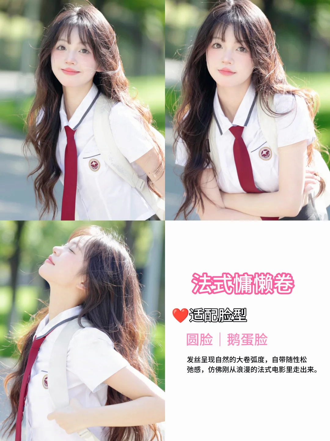 1. 法式慵懒卷🎉发丝是自然大卷弧度,自带随性松弛感,像从法式电影里走出来~适配圆脸、鹅蛋脸,能柔和脸部线条,增加层次感;长脸避雷,会显脸更长。