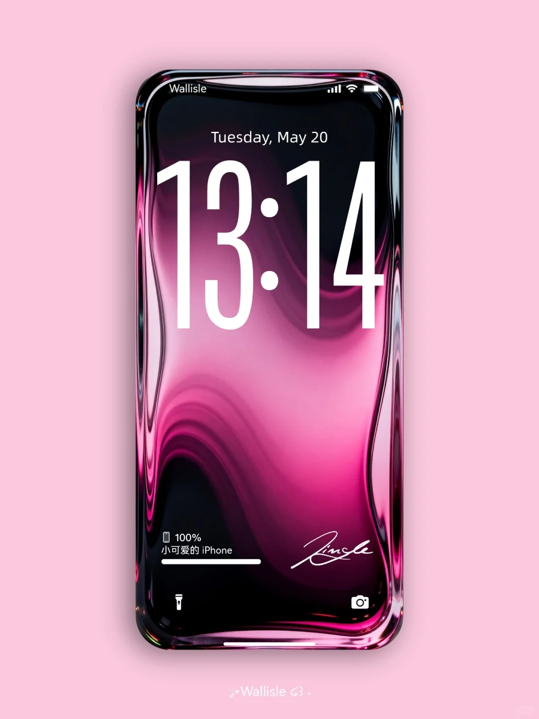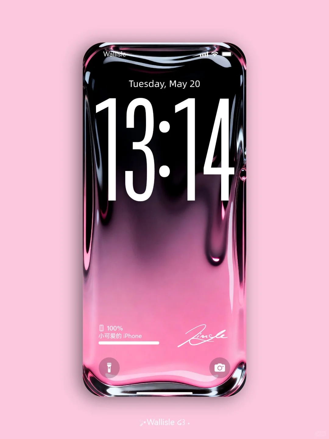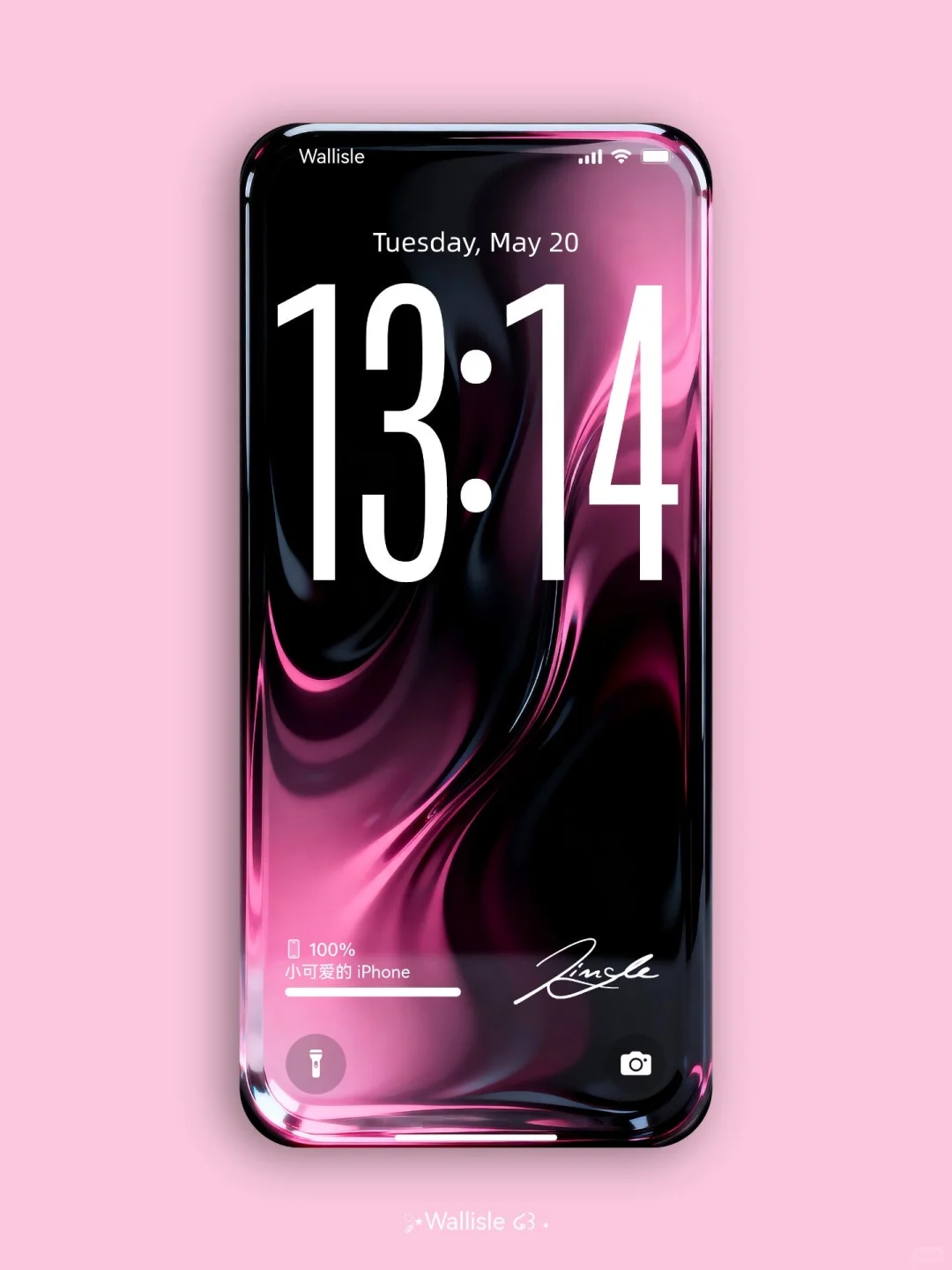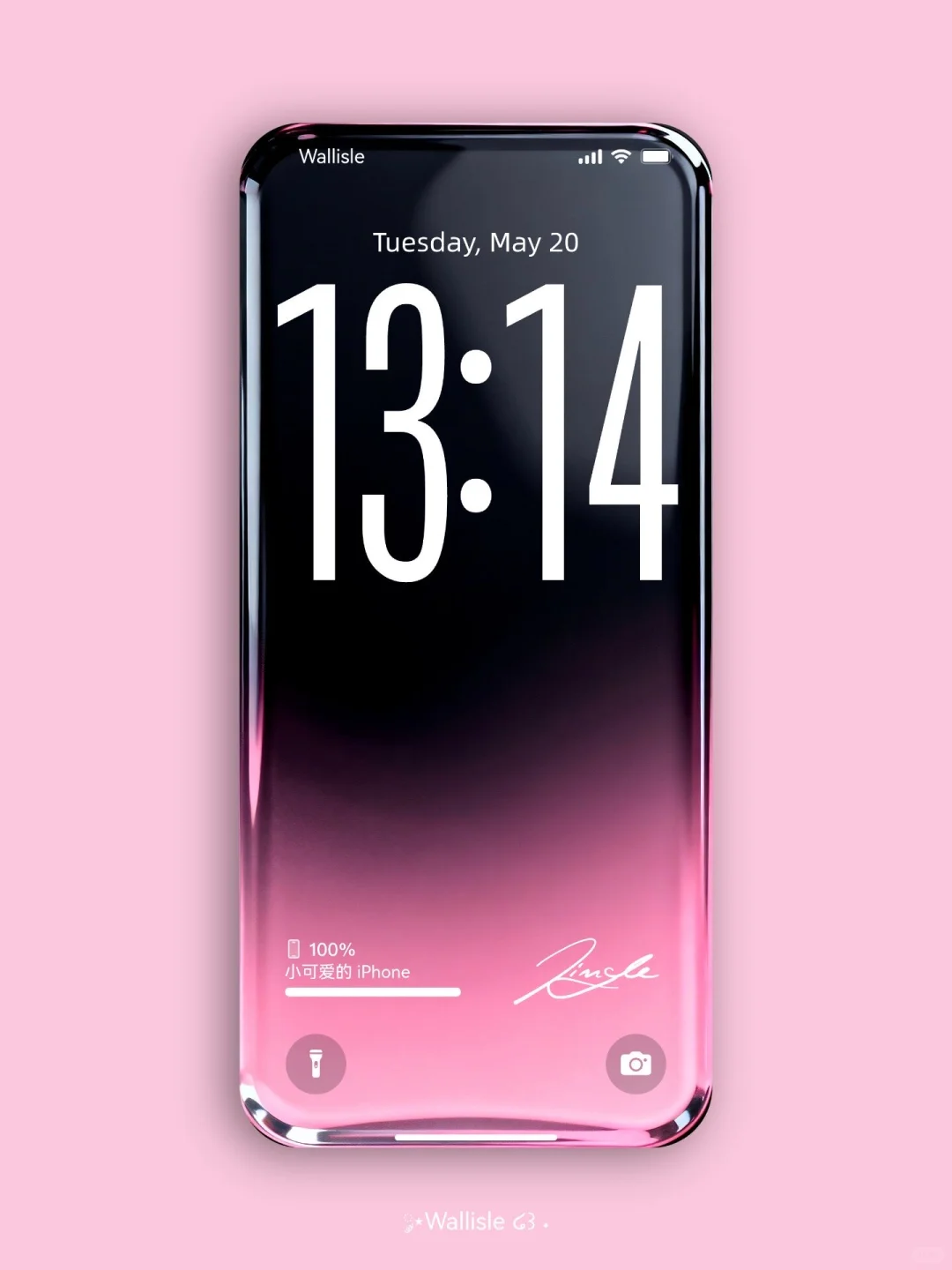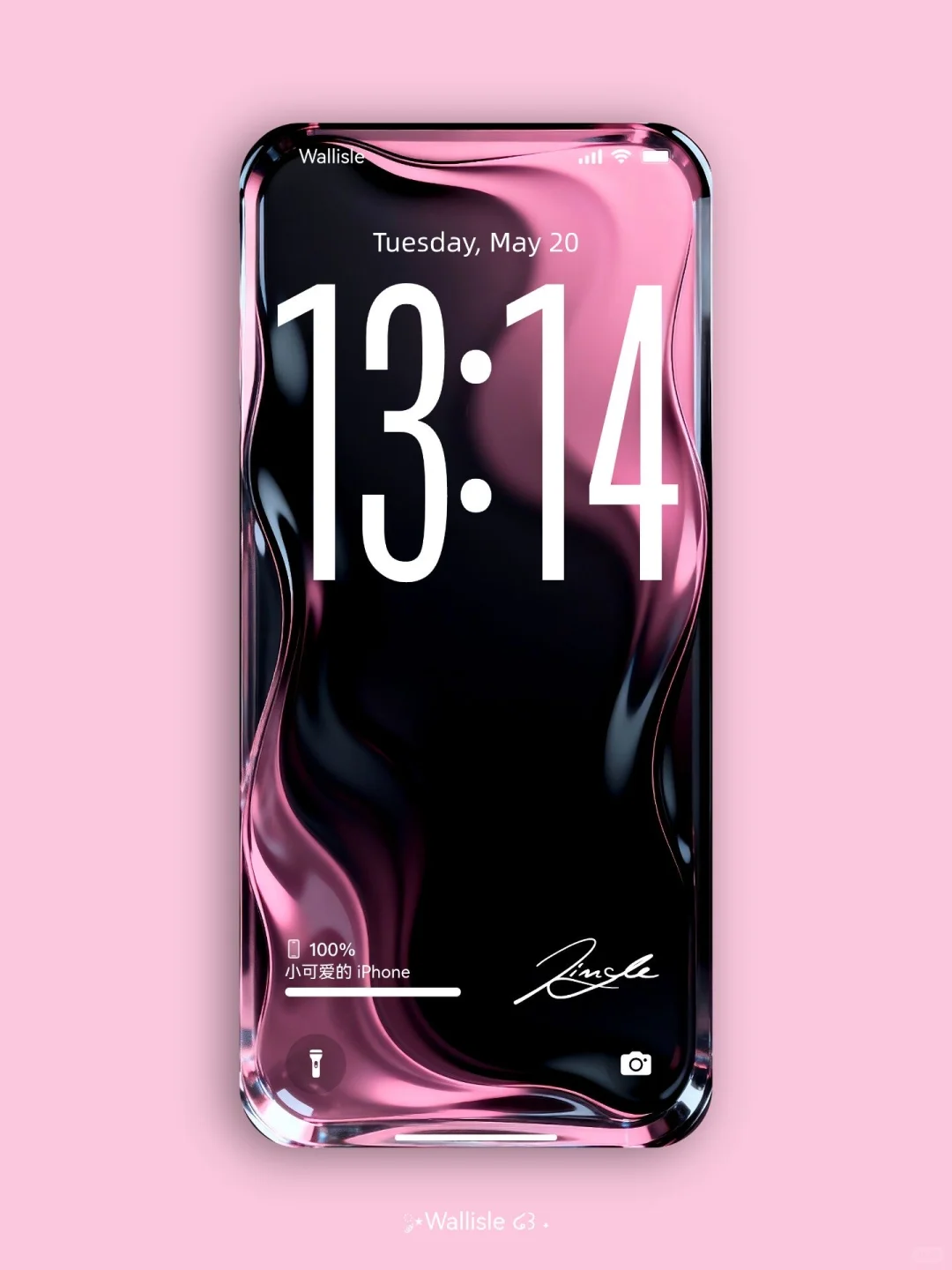 一眼万年粉黑渐变立体|iOS26简约壁纸🩷🖤