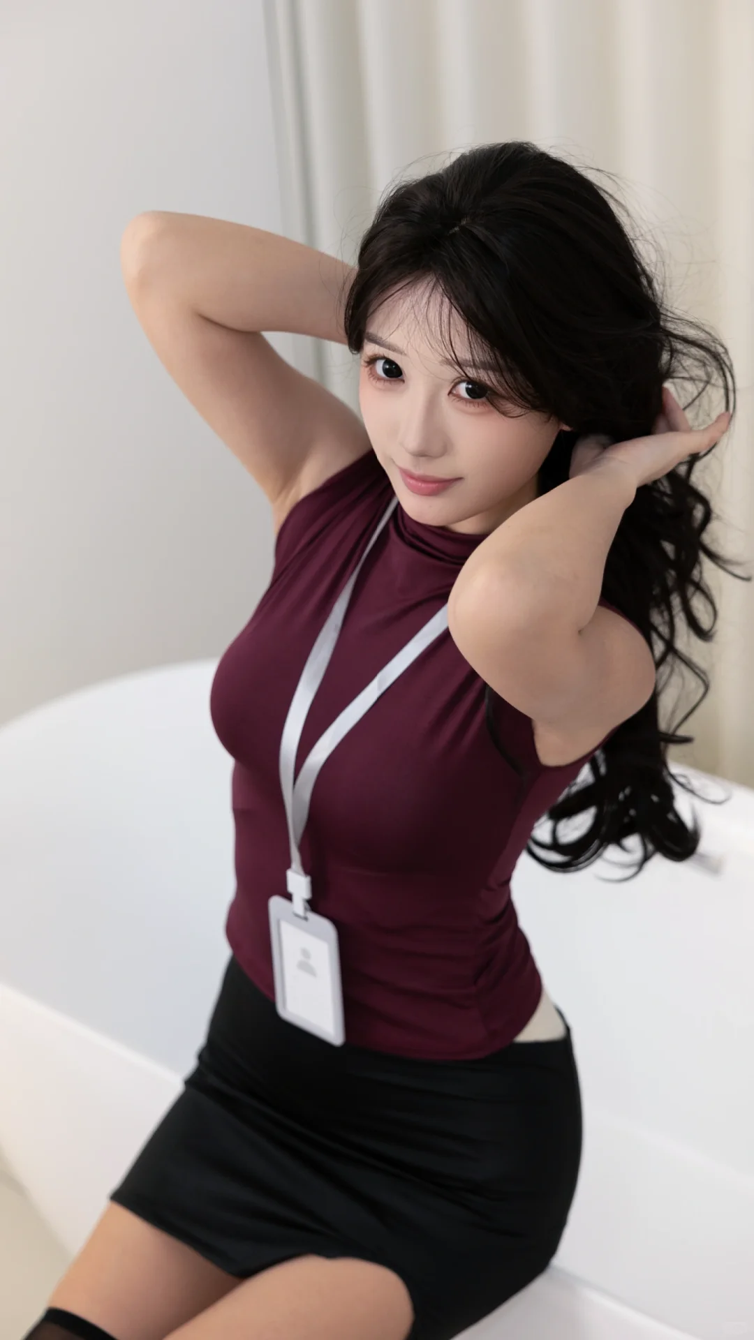 姿势道具藏巧思:沙发上可单手撑扶、侧坐翘腿,或假装翻阅文件;浴缸边尝试俯身整理裙摆、回眸抓拍。道具备上笔记本电脑、香槟杯,增加职场与慵懒反差感,连拍捕捉自然微表情更生动。