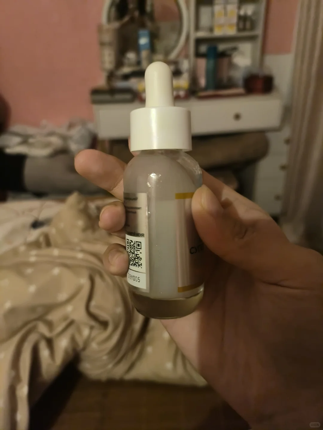 我现在是增加到一滴管半1∶1混合,有时会直接上脸一滴管,然后剩下的半滴管混合面霜用,然后我大前天尝试了一下用两滴管,结果还是爆痘了
