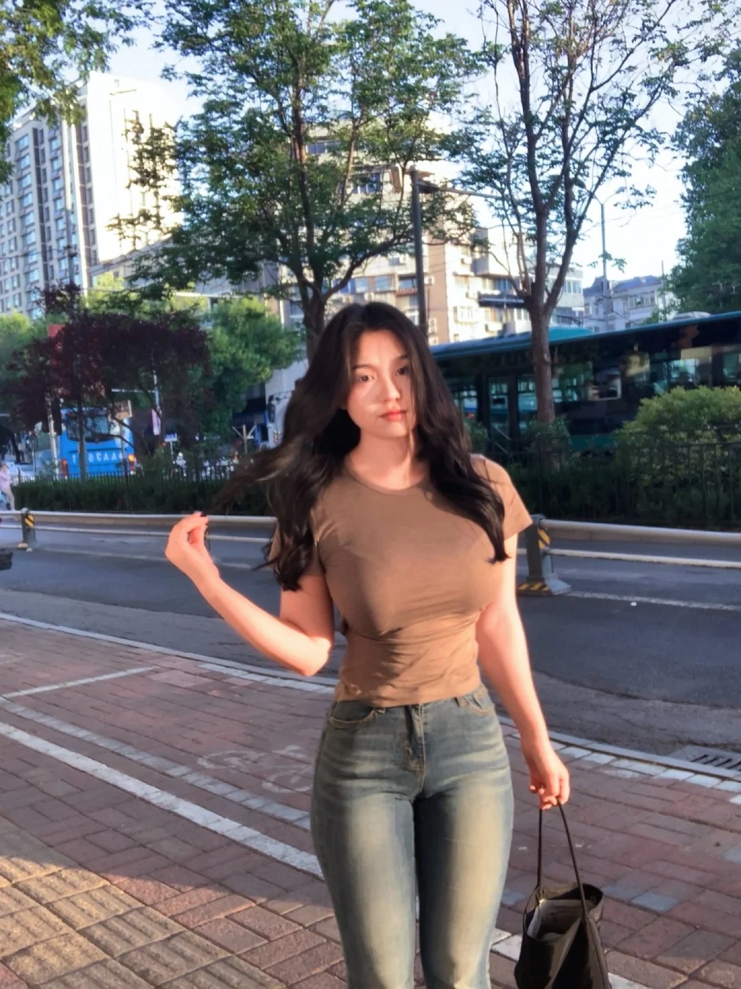 正肩上衣真的适合上半身厚的女生,我要是穿over版,看起来就壮壮的,加上长胖之后肚肚有肉,所以不能选肚子特别紧绷的,那种微微一点余量的感觉就刚刚好!!!