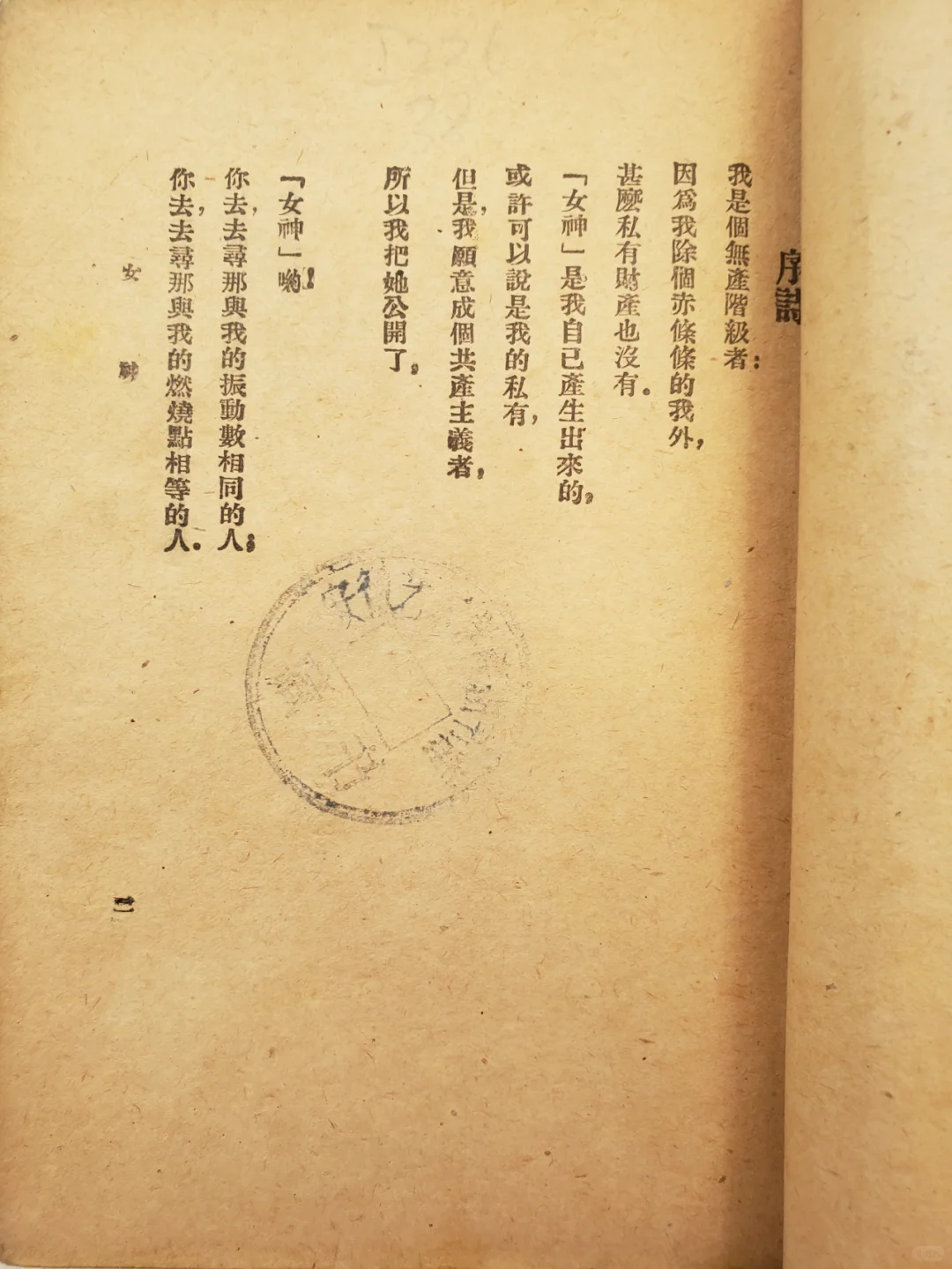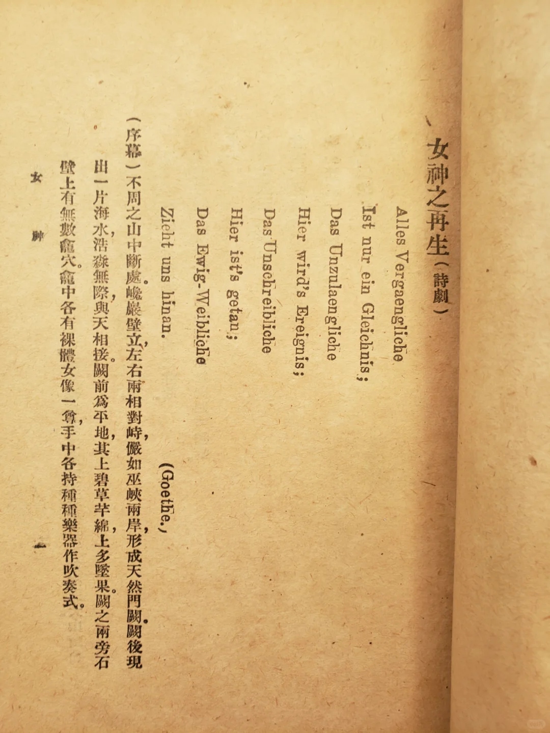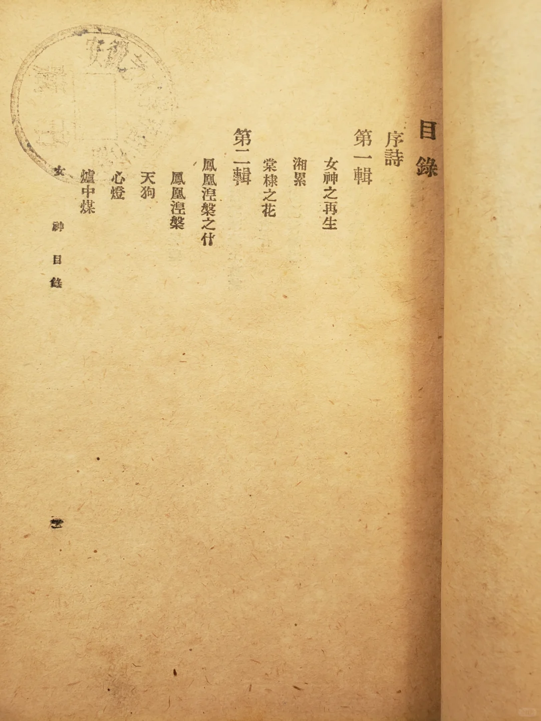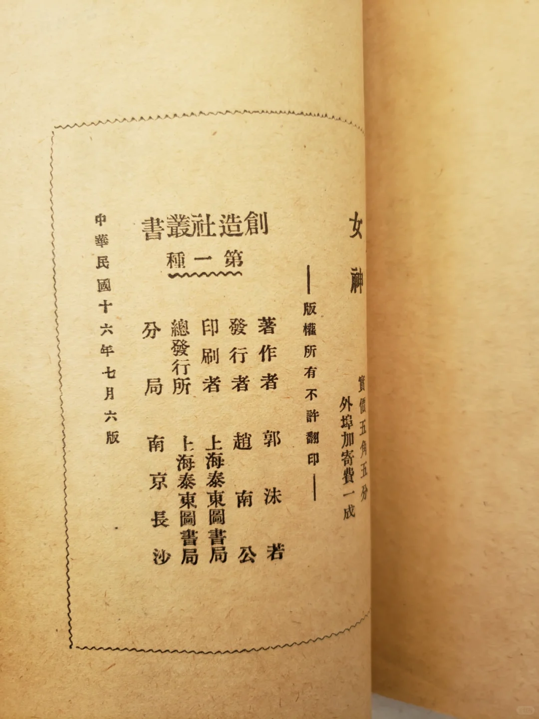 《女神》,郭沫若著,此书为白话诗初期最重要的诗集,现代文学名著,装帧设计为泰东图书局同期作品统一制式,封面题签者已不可考证,最大可能性为作者本人。