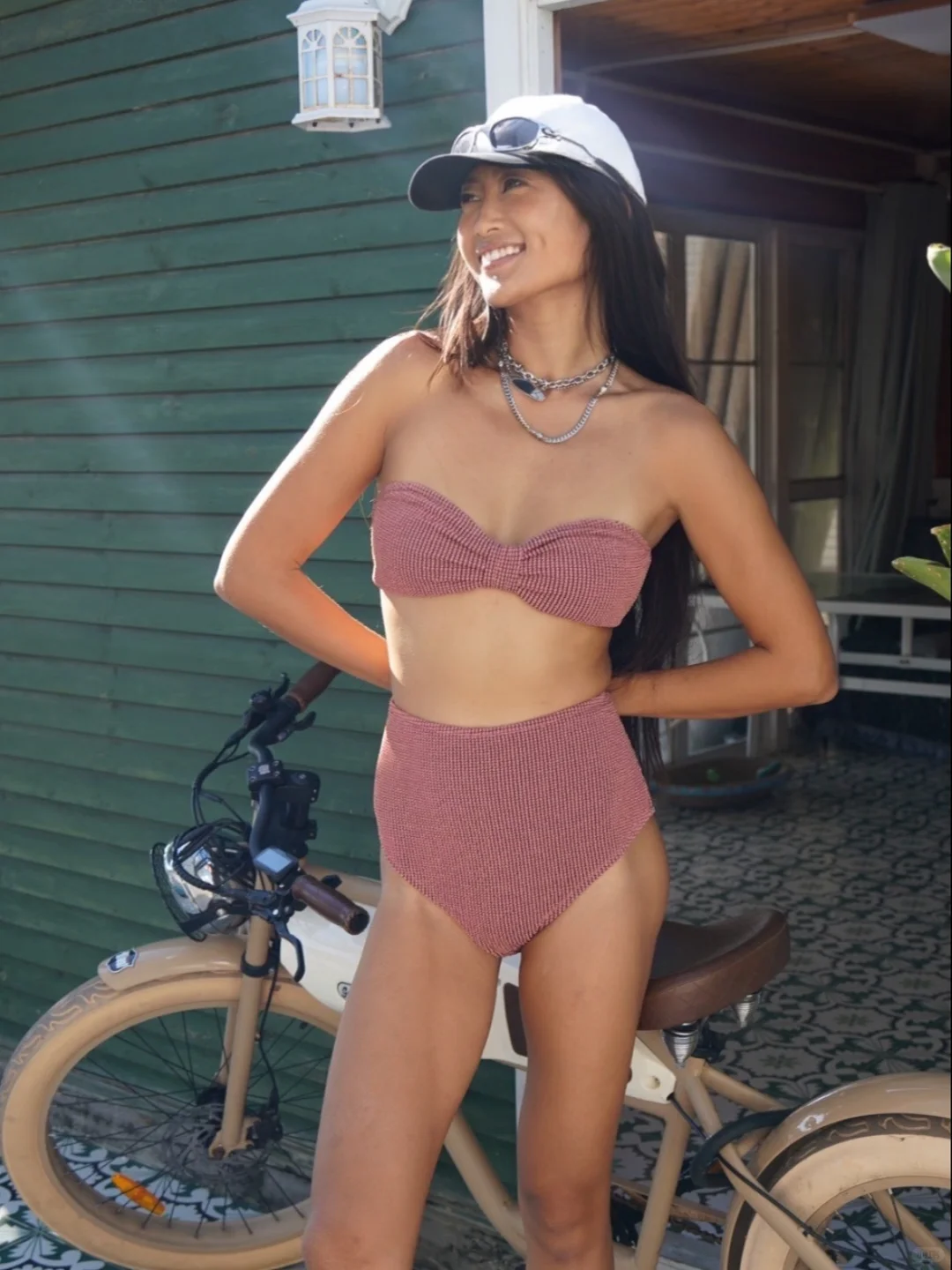 度假氛围拉满!这抹豆沙粉比基尼太绝啦🤍