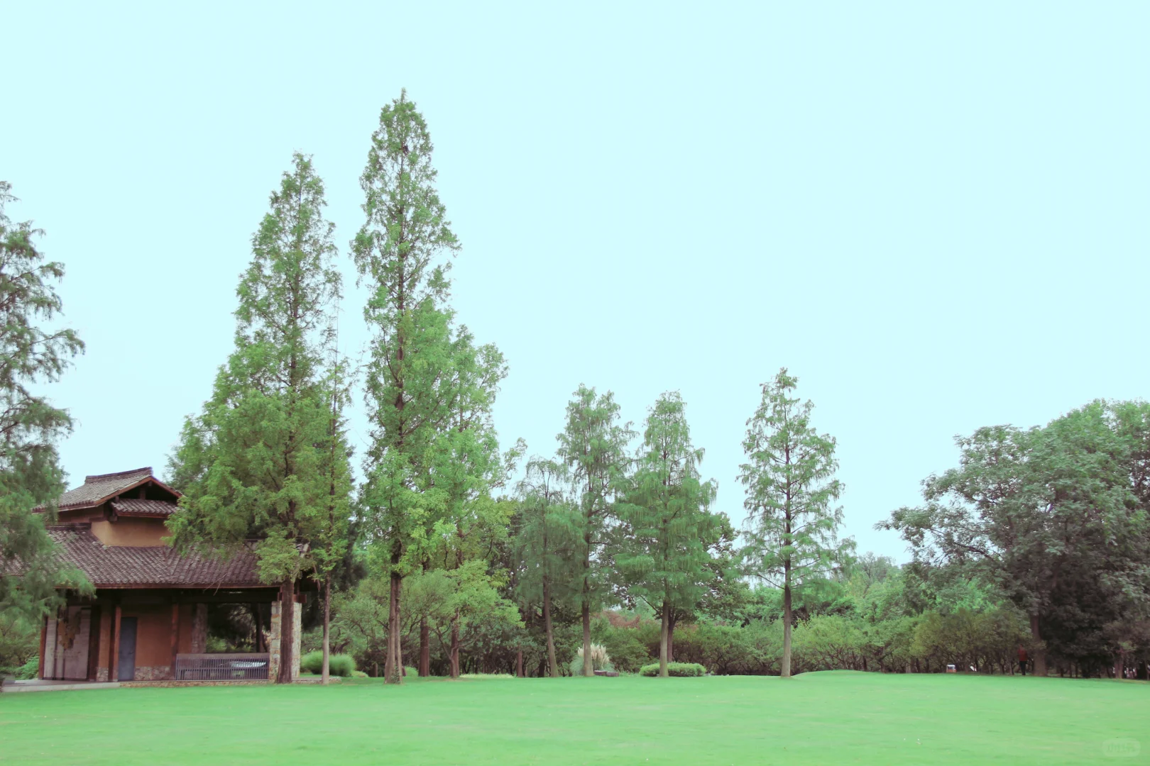 南京明孝陵梅花妆韵景区疏朗草坪与水杉形成一抹很治愈的绿色基地,让人心情舒畅,在这里打卡拍照、奔跑、散步、发呆或者听听音乐,都是不错的选择。