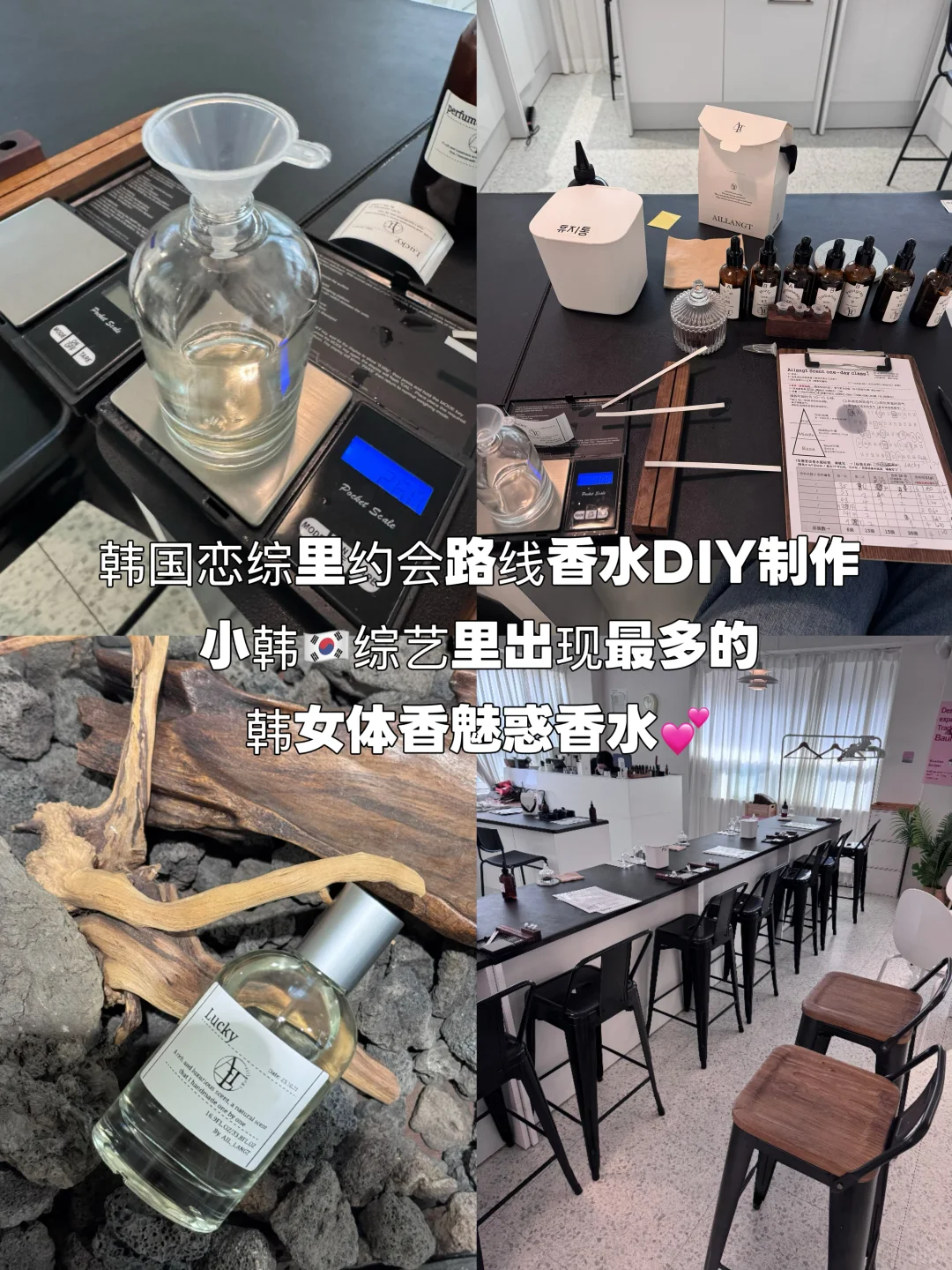 🇰🇷韩国恋综里约会路线的香水制作🫧小韩DIY香水太好玩了!现场教学自己DIY调香 共有68个味道可以选择 总共可以选6~7瓶自己喜欢的味道!然后自己动手用喜欢的味道调制香水!前面会给你用实验🧪调香 调三次选出自己坠喜欢的香味后 再自己去挑6瓶味道制作一瓶100ml香水 自己随意DIY~super特别! 我DIY出来的香水感觉super勾人魅惑 香水太好闻了!还带淡淡的无花果和桃子香 就很魅惑 工作人员小姐姐一直很热情 不会就问她 一直耐心指导 最后调节出来的香味非常成功👍性价比super高 平价学生党可以冲!他家还可以自己设置香水标签哦!我设置的是LUCKY 好运满满🍀调制后的香水建议放两周后使用坠棒👍爱住这家了 以后的香水打算多尝试自己制作💕