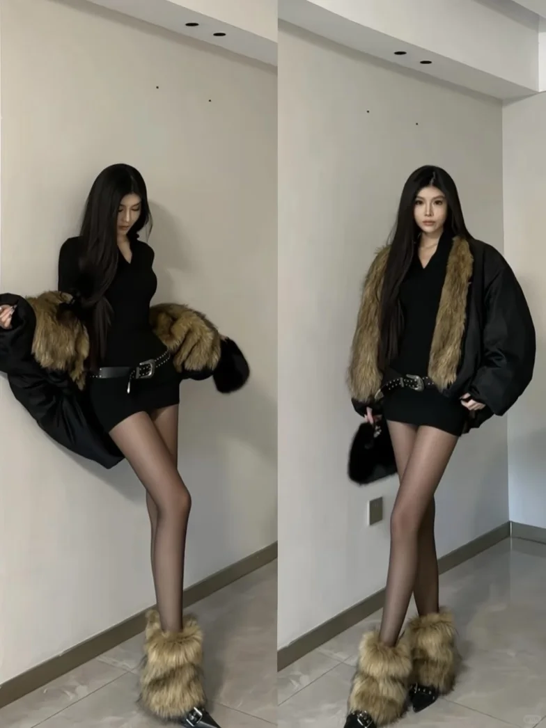 毛毛外套穿搭合集