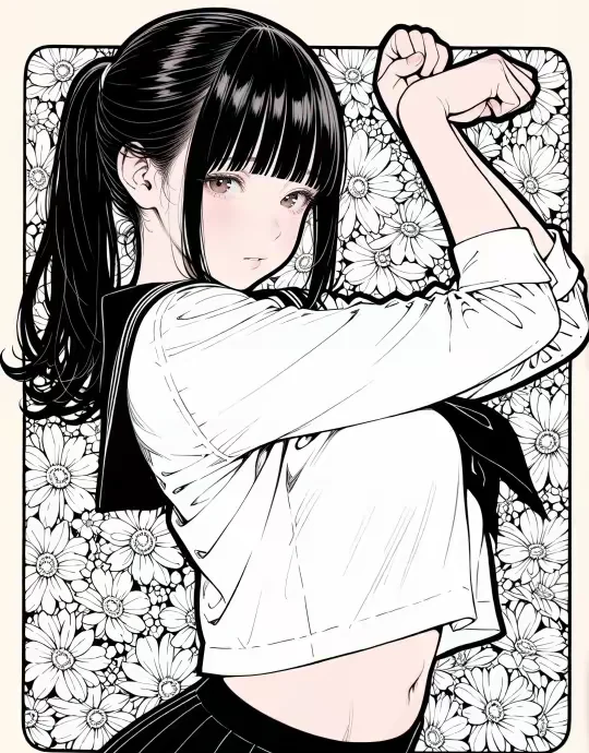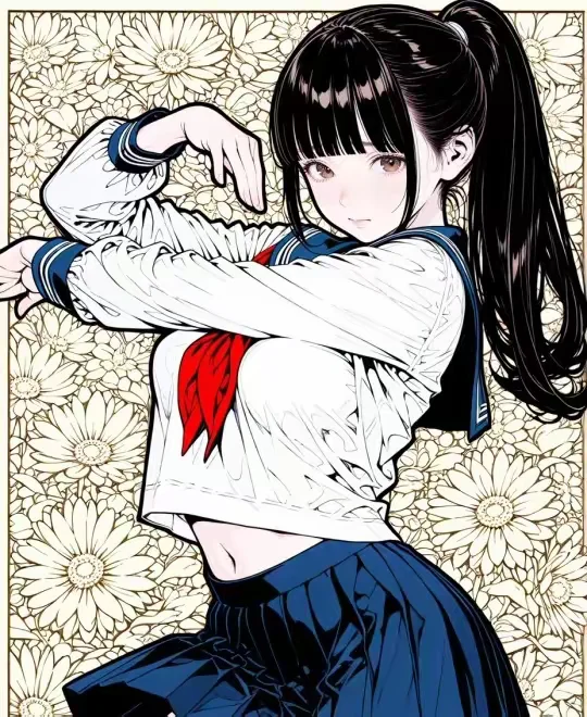 不同姿态的日系美少女。可以临摹下,注意人物的动态,衣服褶皱的处理。